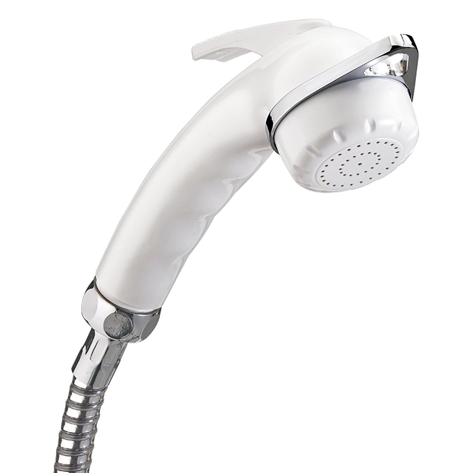 Adjustable shower head Charisma with 1.5 or 2 m metal hose for water sockets & service hatches. Adjustable: impulse/continuous run/off.