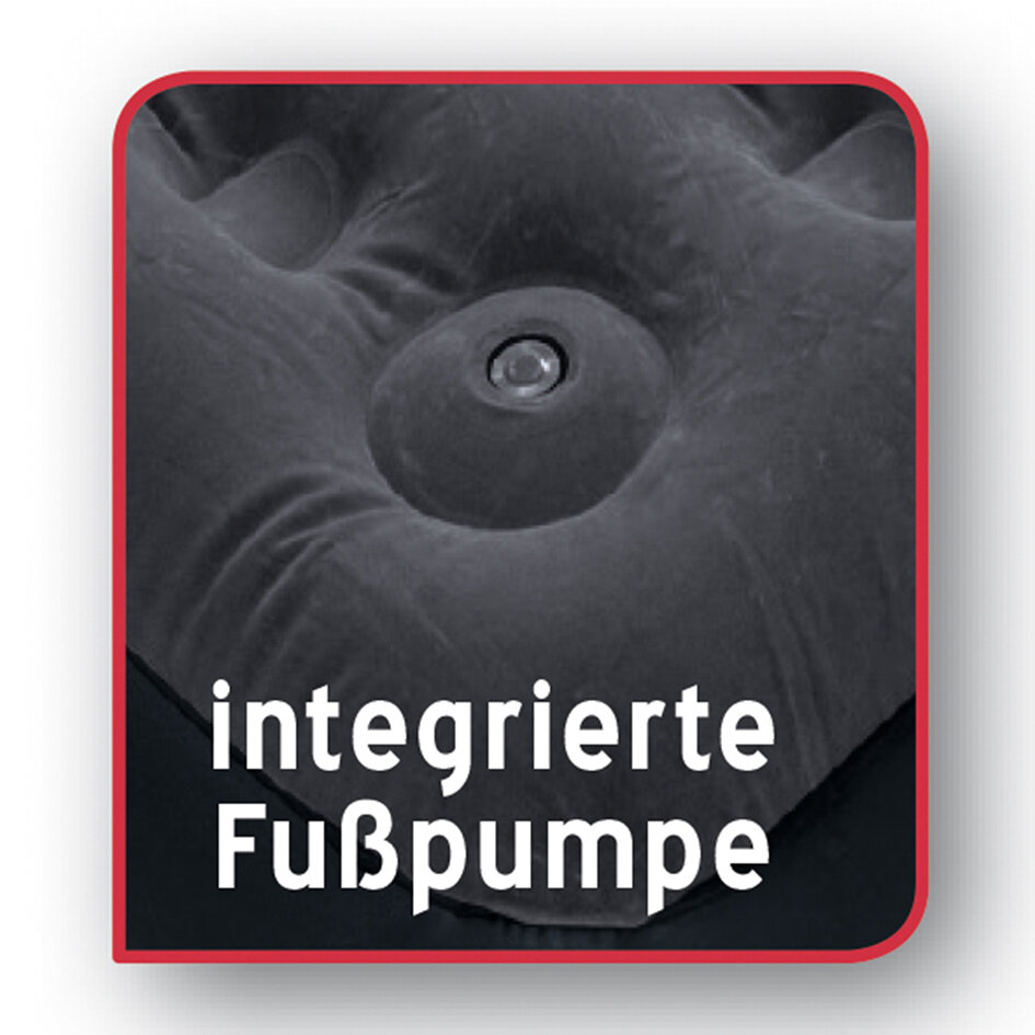 Flocked top. With built-in foot pump. Alternatively, the air bed can also be filled with a conventional pump. Height 22 cm.