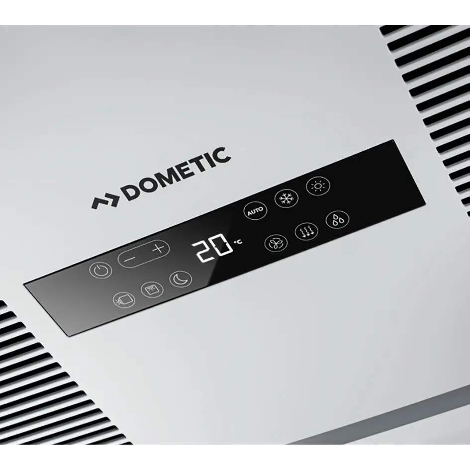 The air distributor with LED illumination has an electronic touch operation panel for a comfortable adjustment of temperature and air flow. Compatible with the Dometic smartphone app.
