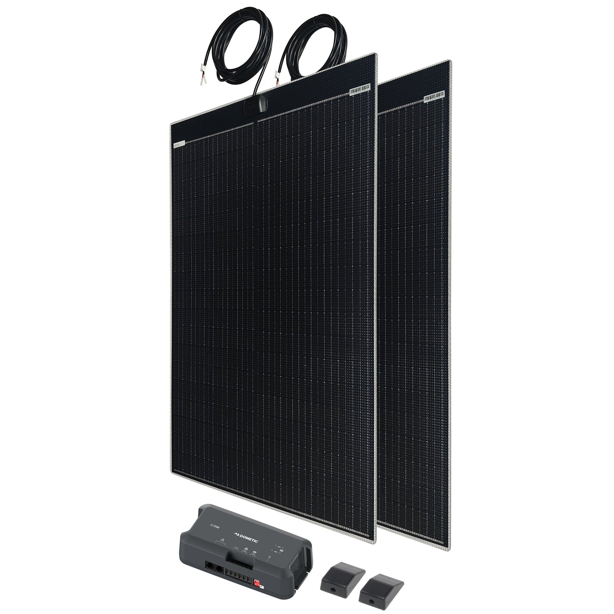 | Zusatzinformation: | Lieferumfang: 2 Light & Flat Solarmodule 130 Wp, fest mit dem Modul verbundenes Anschlusskabel (4 m), Dometic MPPT Solarregler SC 330 mit Bluetooth und N-Bus Konnektivität, 2 druckwasserdichte und aufklebbare Dachdurchführungen. |
