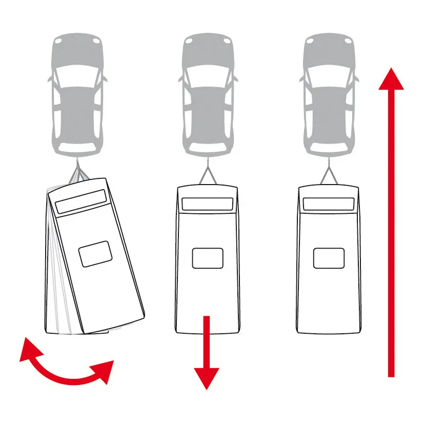 - By braking, the caravan pulls itself independently into the track: the car/trailer combo is safely on the road again.