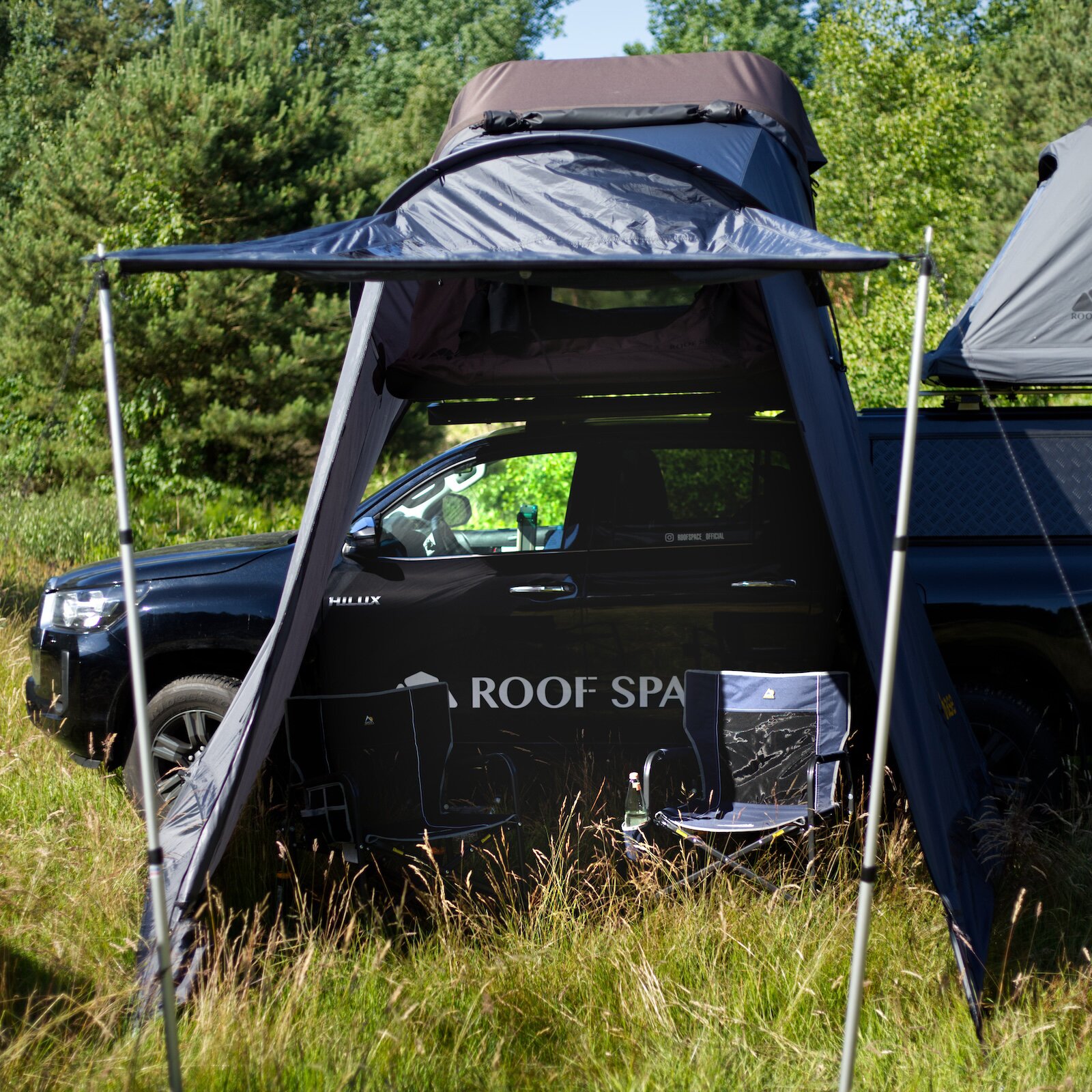 Expands your roof tent flexibly, offers 7 m² of extra sheltered space, is individually adjustable and quick to set up.
