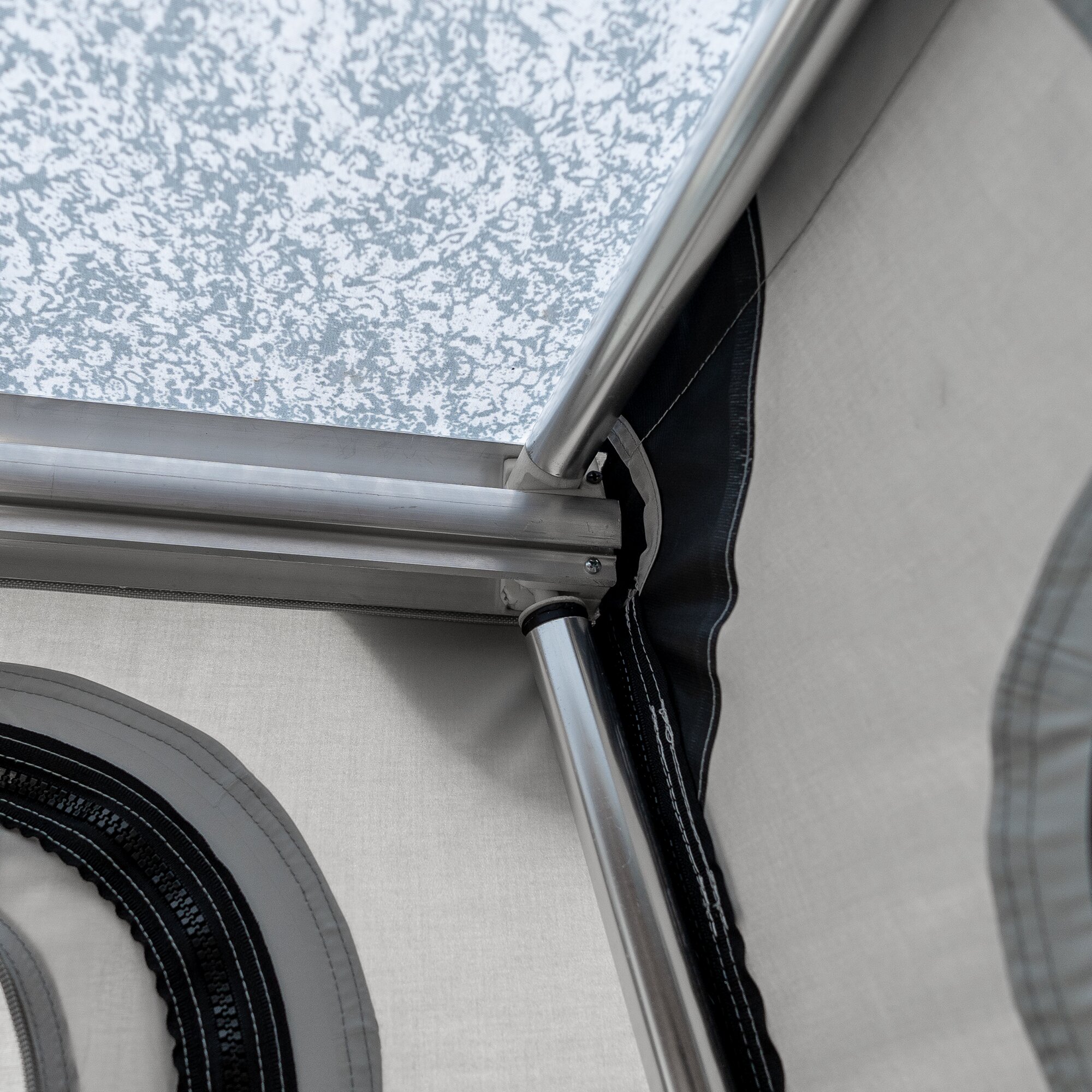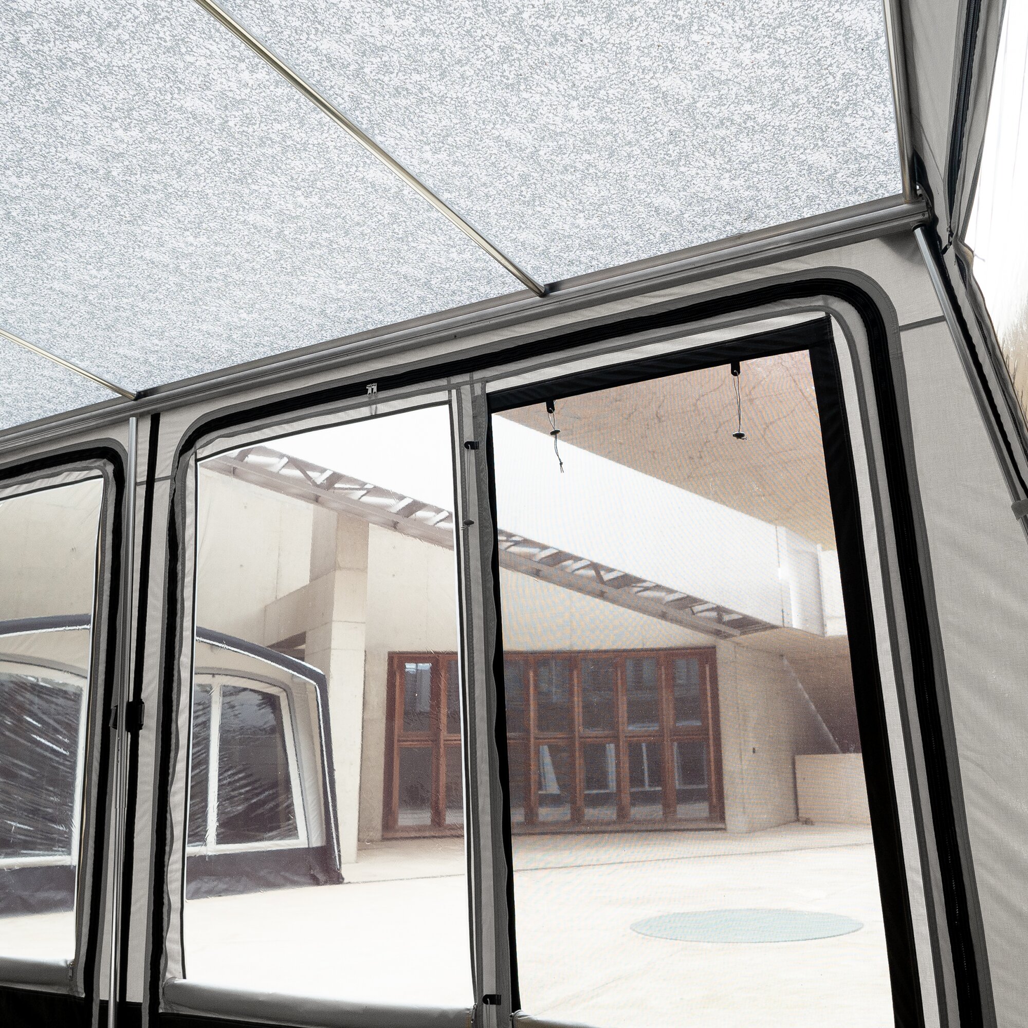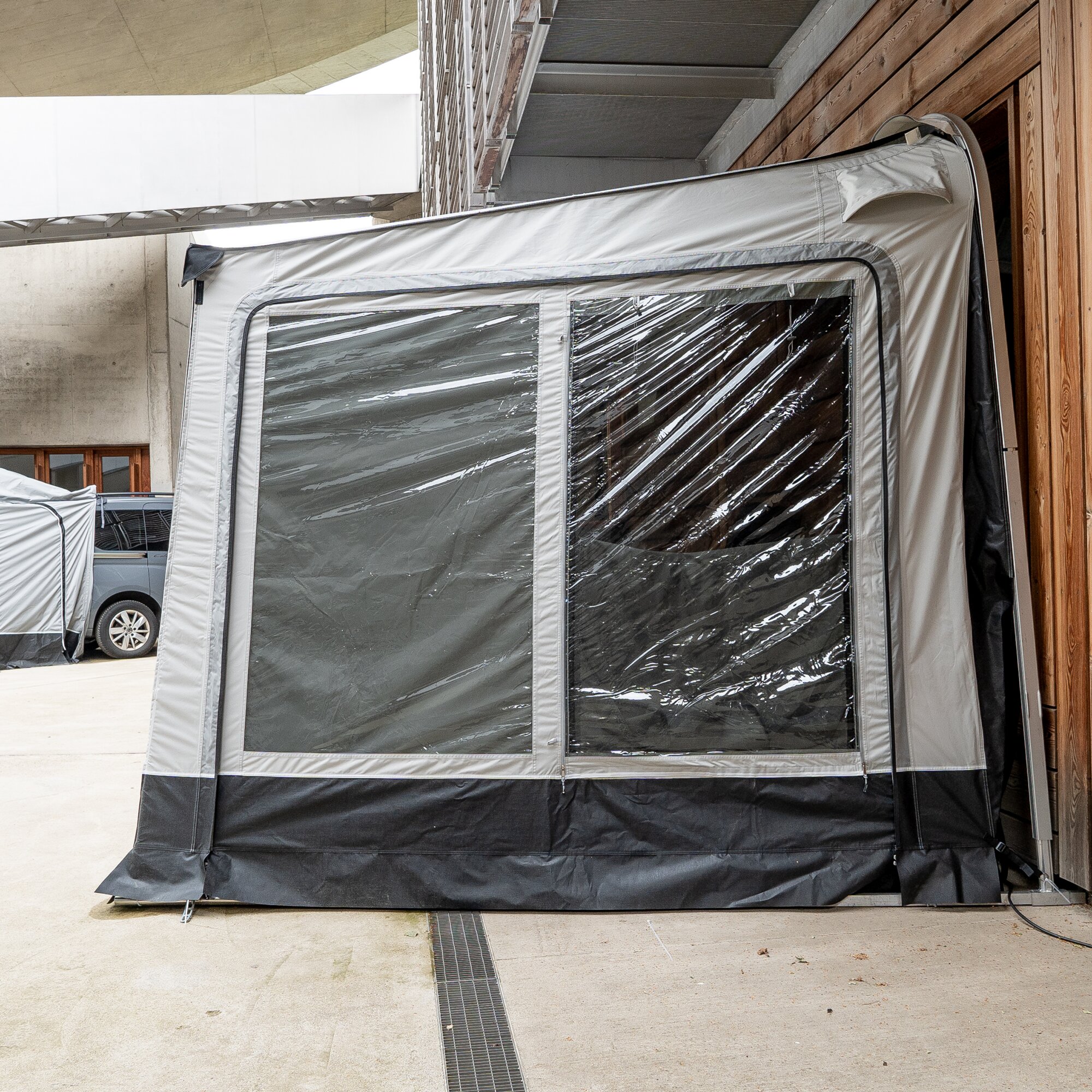 Practical details such as Vario corners, covered zips, blackout options, mosquito nets and a windbreak ensure comfort. High-quality materials like the TenCate roof fabric and HydroTech® CottonTouch make the Luna Plus durable and weatherproof. Everything needed for a quick setup is included.