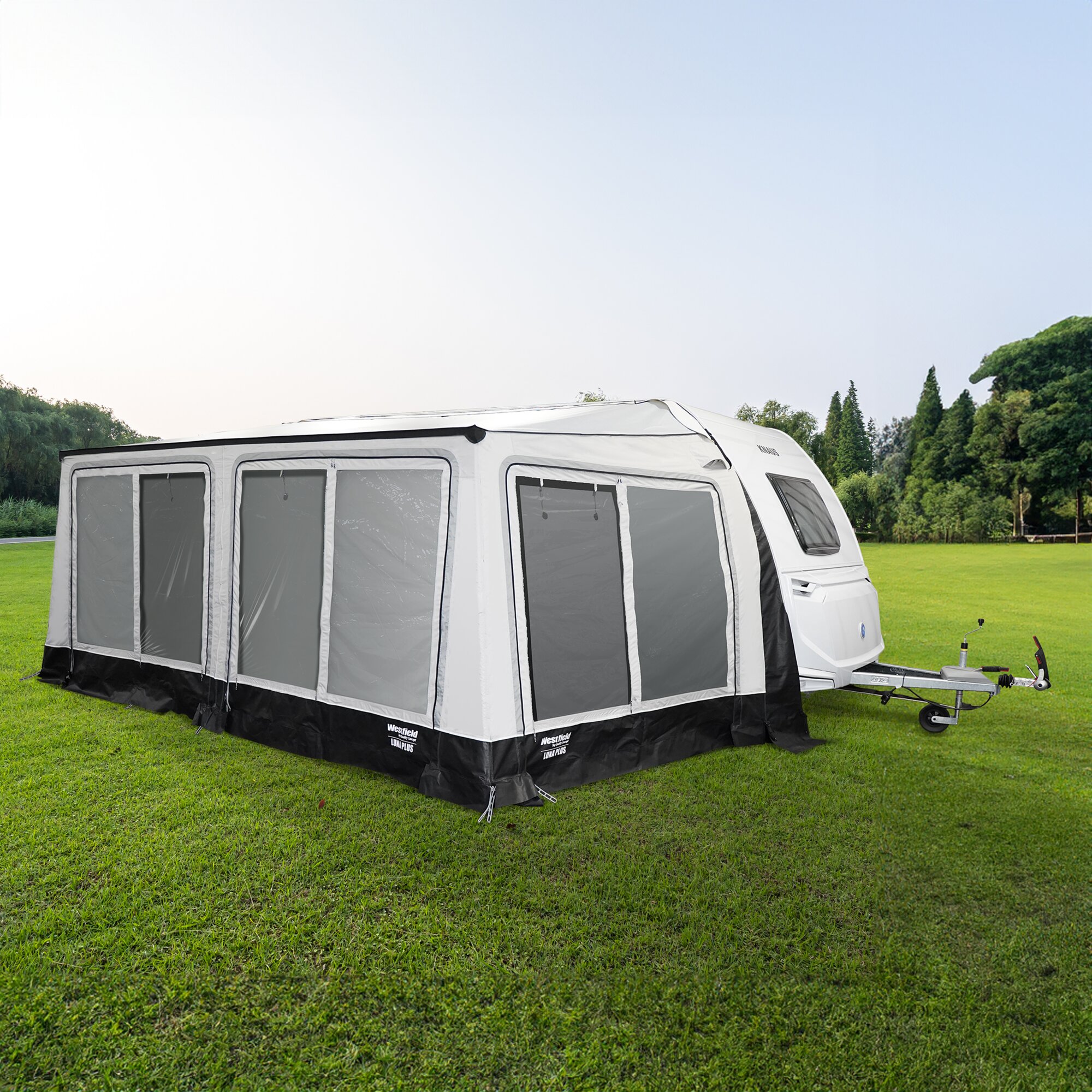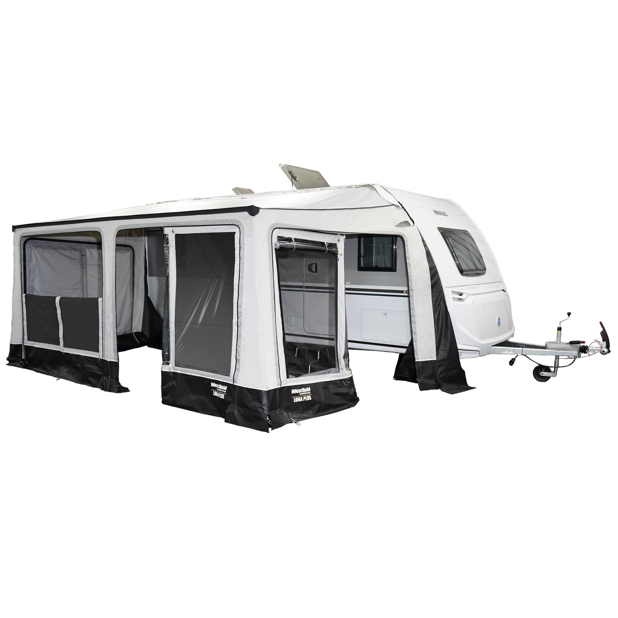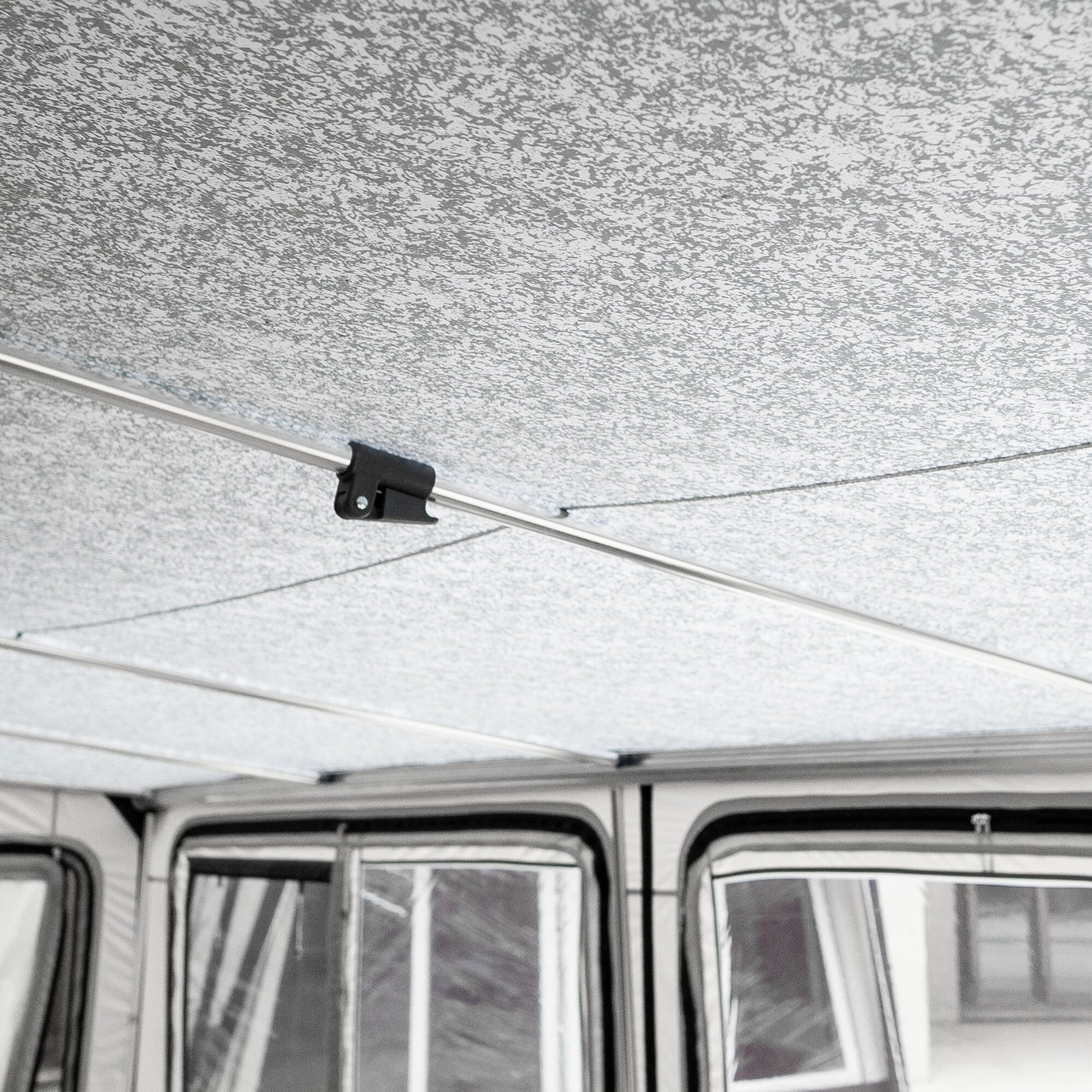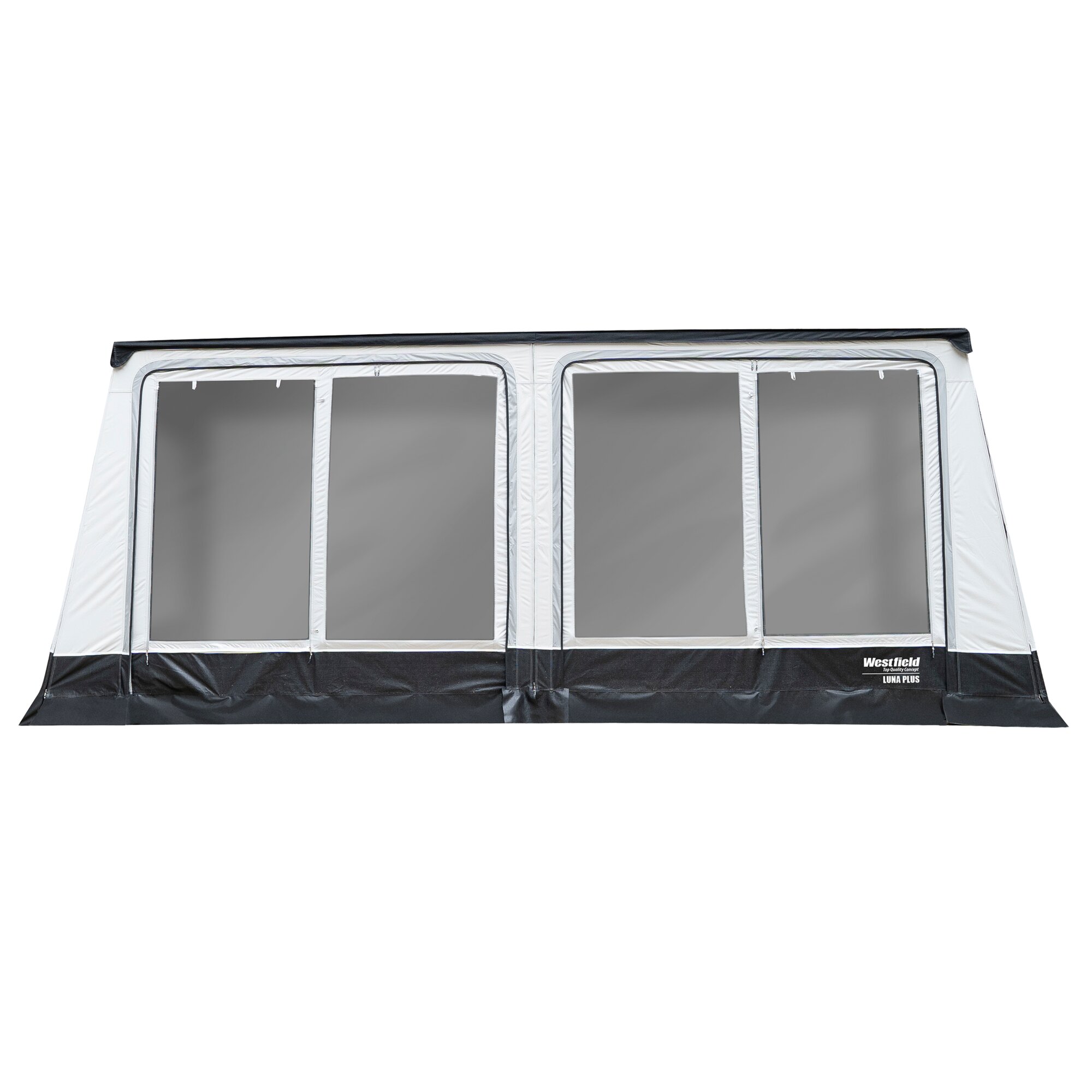 Practical details such as Vario corners, covered zips, blackout options, mosquito nets and a windbreak ensure comfort. High-quality materials like the TenCate roof fabric and HydroTech® CottonTouch make the Luna Plus durable and weatherproof. Everything needed for a quick setup is included.