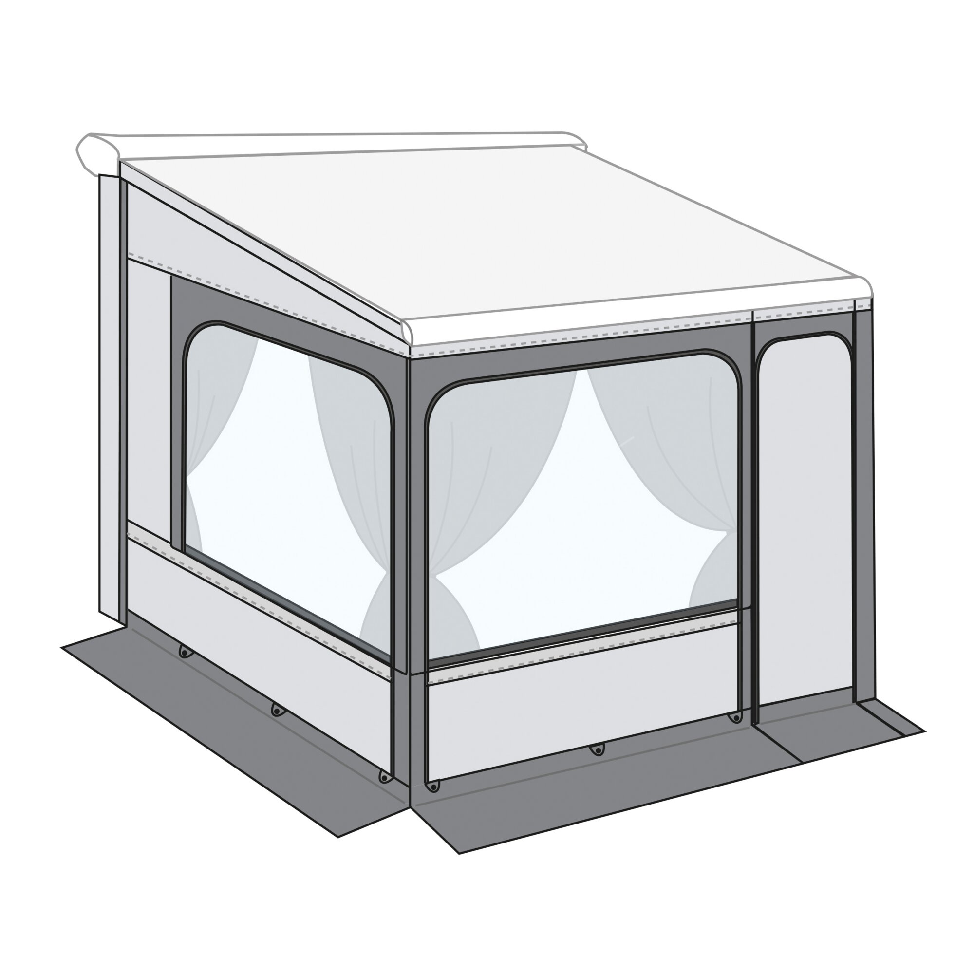 Front wall: If your awning is 320 cm long or longer, you need the Privacy Room 300. In this case, you also need a front wall extension, the size of which depends on the length of your awning.
