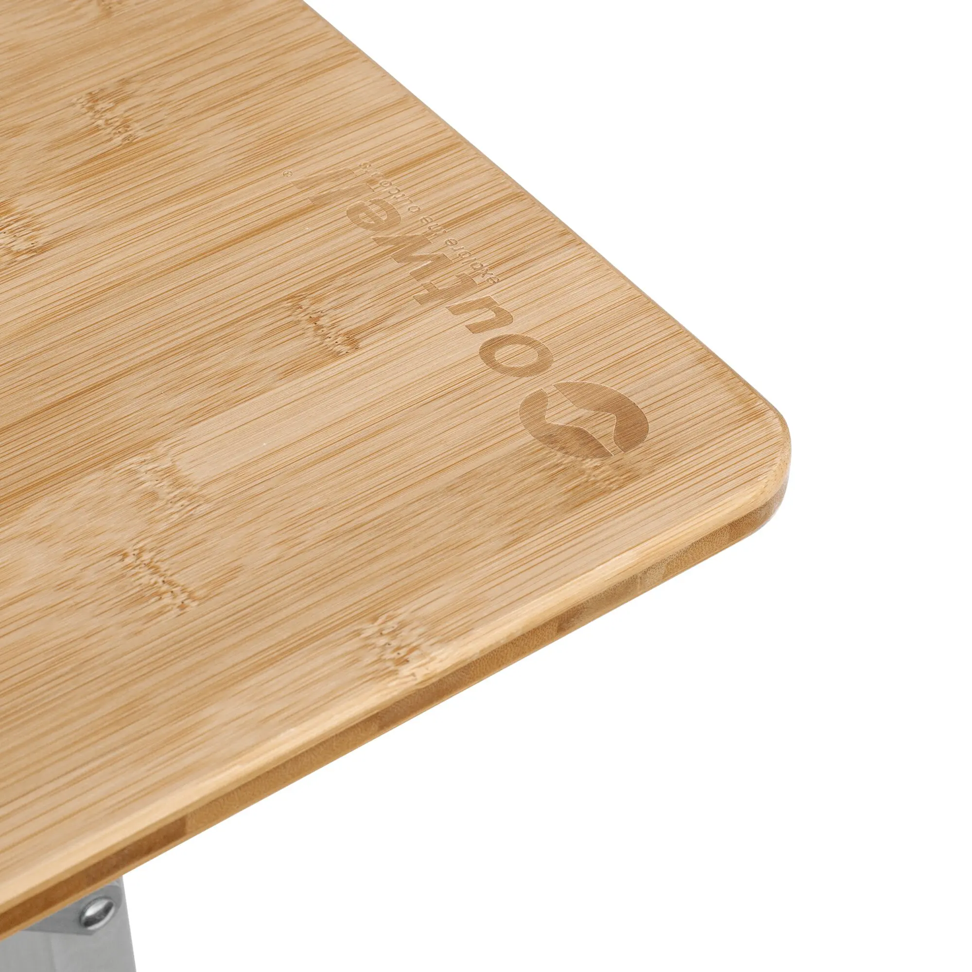 Stylish table in a modern design. Made of durable materials, equipped with a durable bamboo tabletop and aluminium frame. Assembled and disassembled within seconds. Convenient handles make it easy to transport. Small pack size. Adjustable feet.