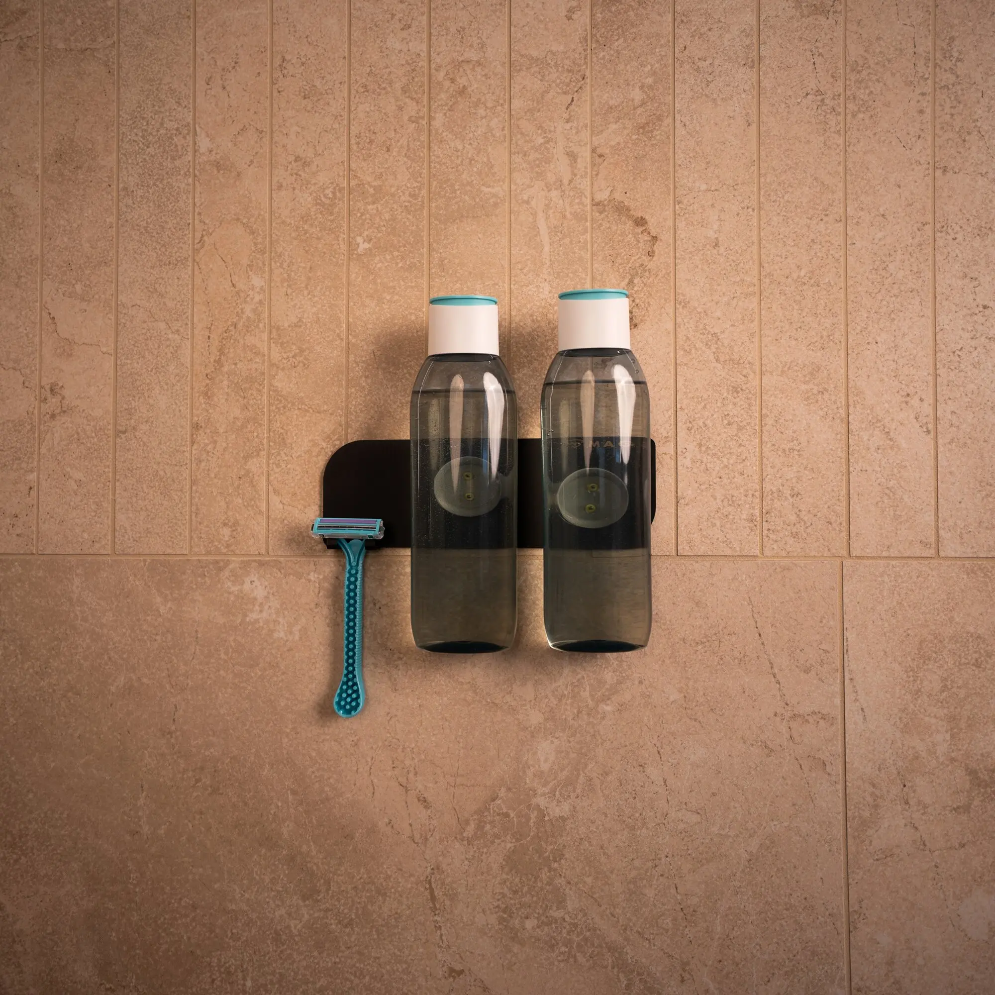 The integrated hooks can hold up to 0.5 kg and are perfect for razors, shower squeegees or other bathroom accessories.