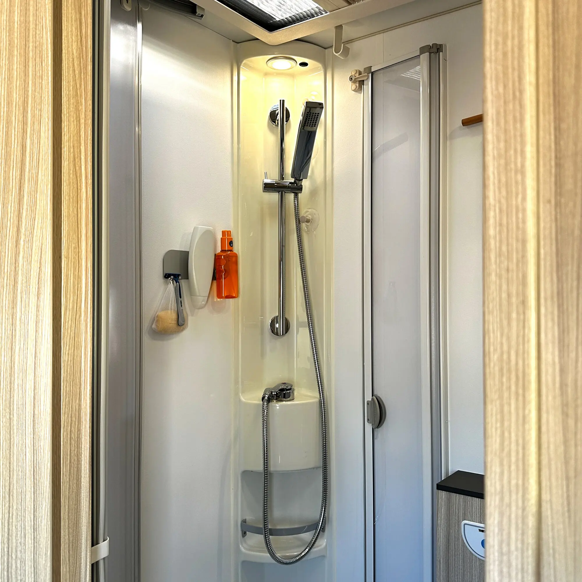 The integrated hooks can hold up to 0.5 kg and are perfect for razors, shower squeegees or other bathroom accessories.