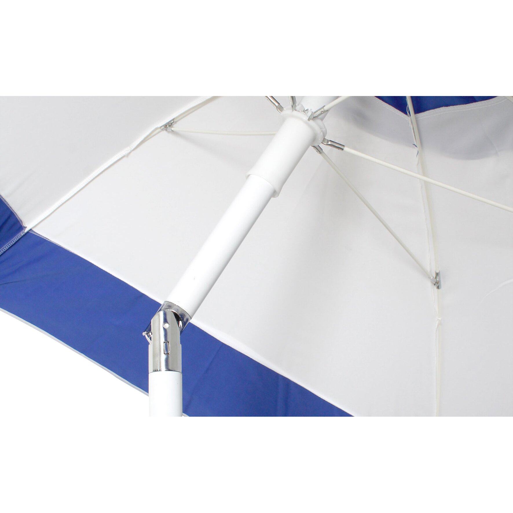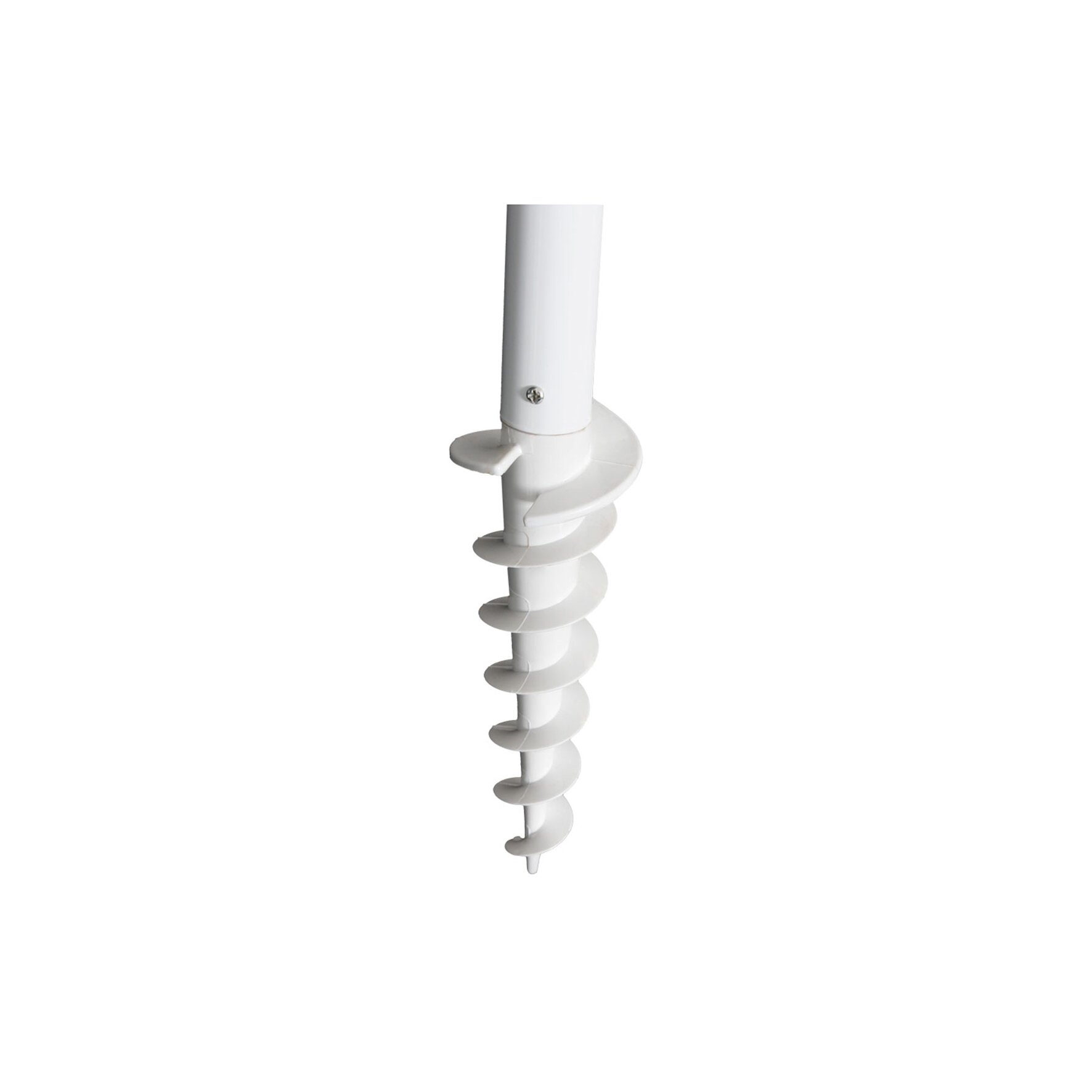 Beach parasol with 6 sturdy ribs. Sturdy, powder-coated steel pole ø 3.2 cm with aluminium joint and a large, integrated screw for sandy grounds. Wind-resistant due to central ventilation bellows. Stylish design. With carry bag.