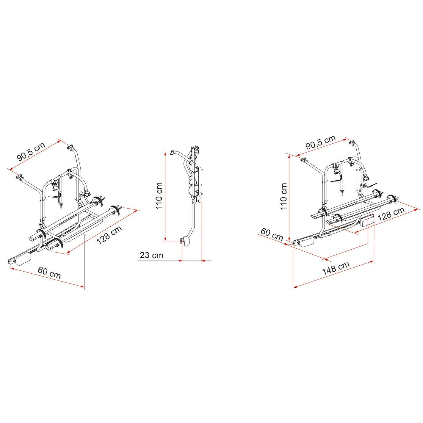 | Lieferumfang Fahrradträger: | 1 Bike-Block Pro S 3, 1 Bike-Block Pro S 1, 1 Rack Holder, 1 Security Strip, 2 Rail Quick Pro, Montagehalterung, Nummernschildhalter |