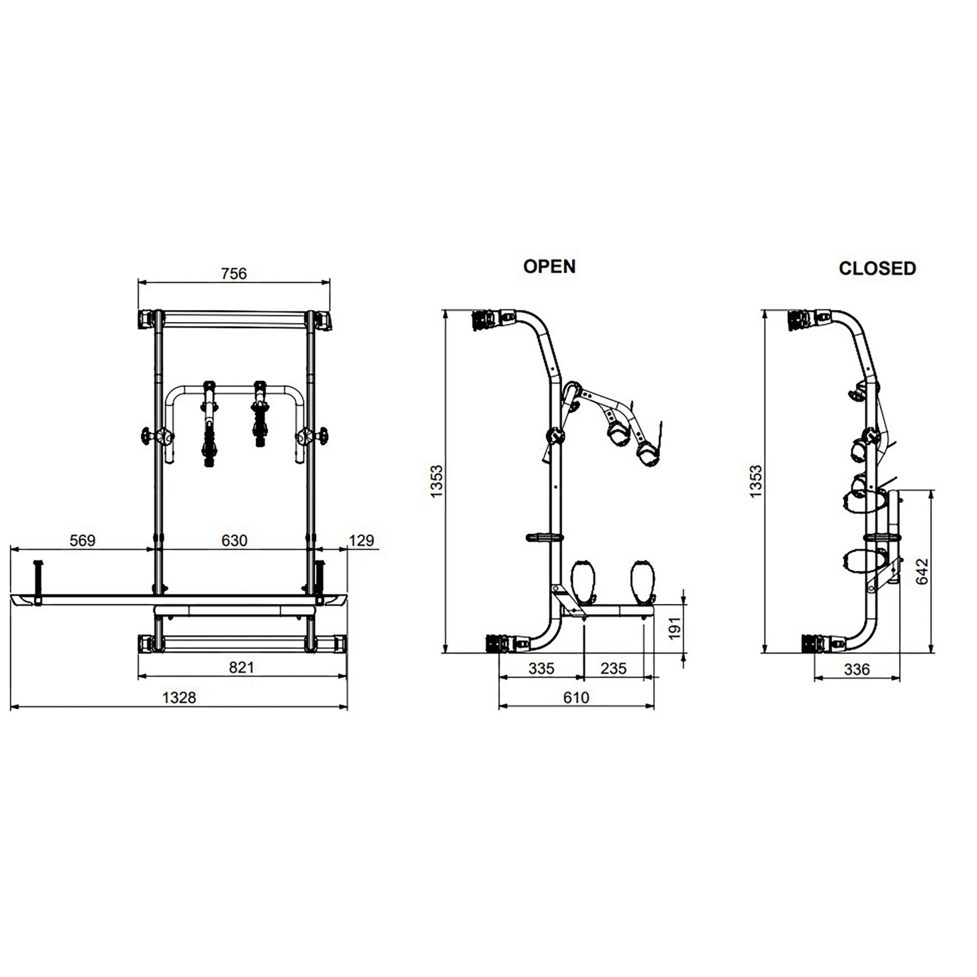 The bike carrier is suitable for two e-bikes or normal bikes. With the optional R-Bike 3Rail accessory, you can even transport three standard bikes. It is easy to install, easy to maintain and compatible with many accessories. Designed for converted vans. Complies with the ECE R26 regulations for vehicle installation.