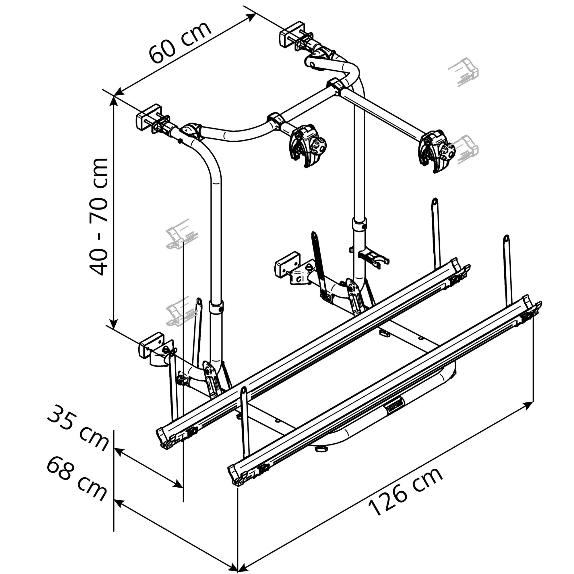 | Lieferumfang Fahrradträger: | 2 Abstandshalter, 2 Fahrradschienen |