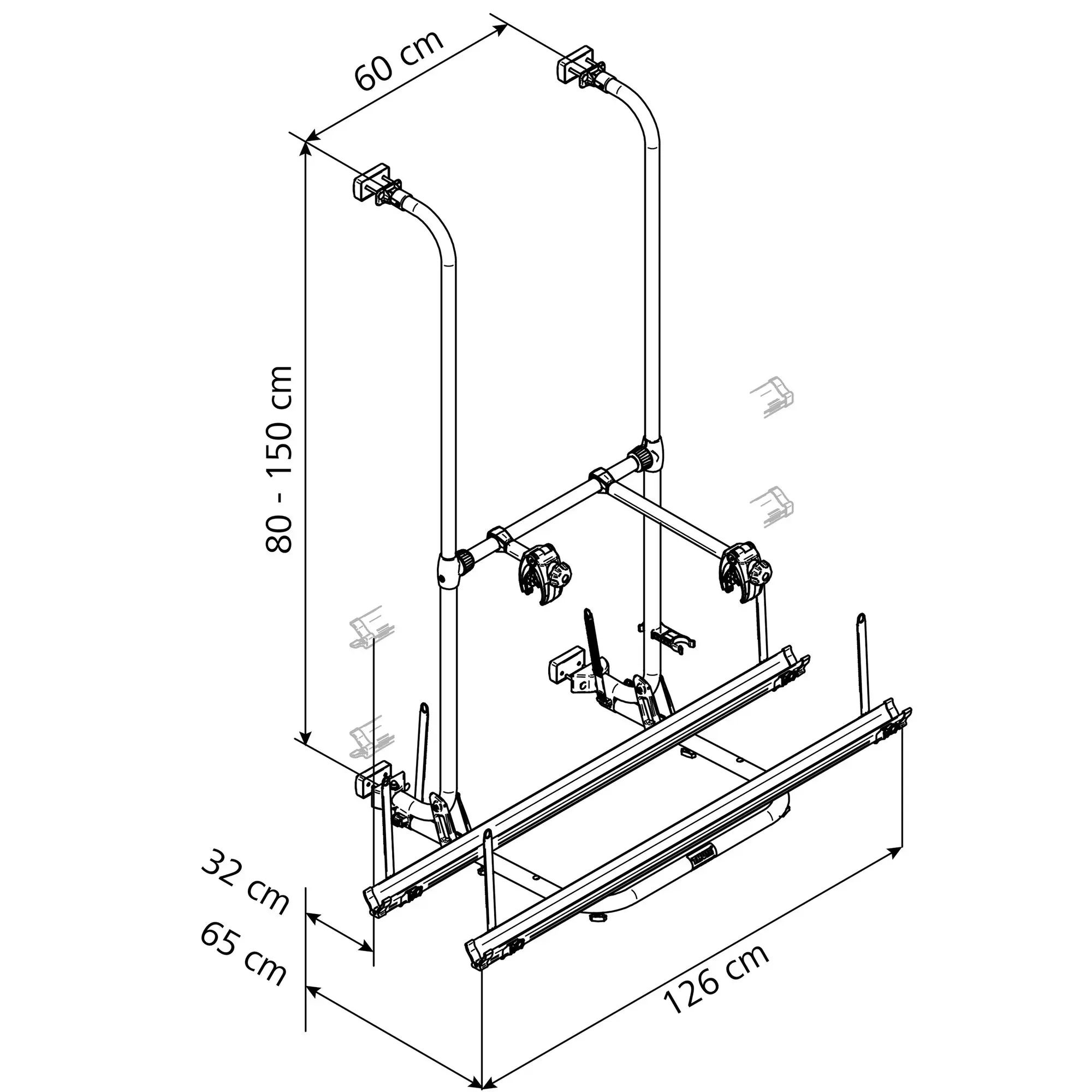 | Lieferumfang Fahrradträger: | 2 Abstandshalter, 2 Fahrradschienen |