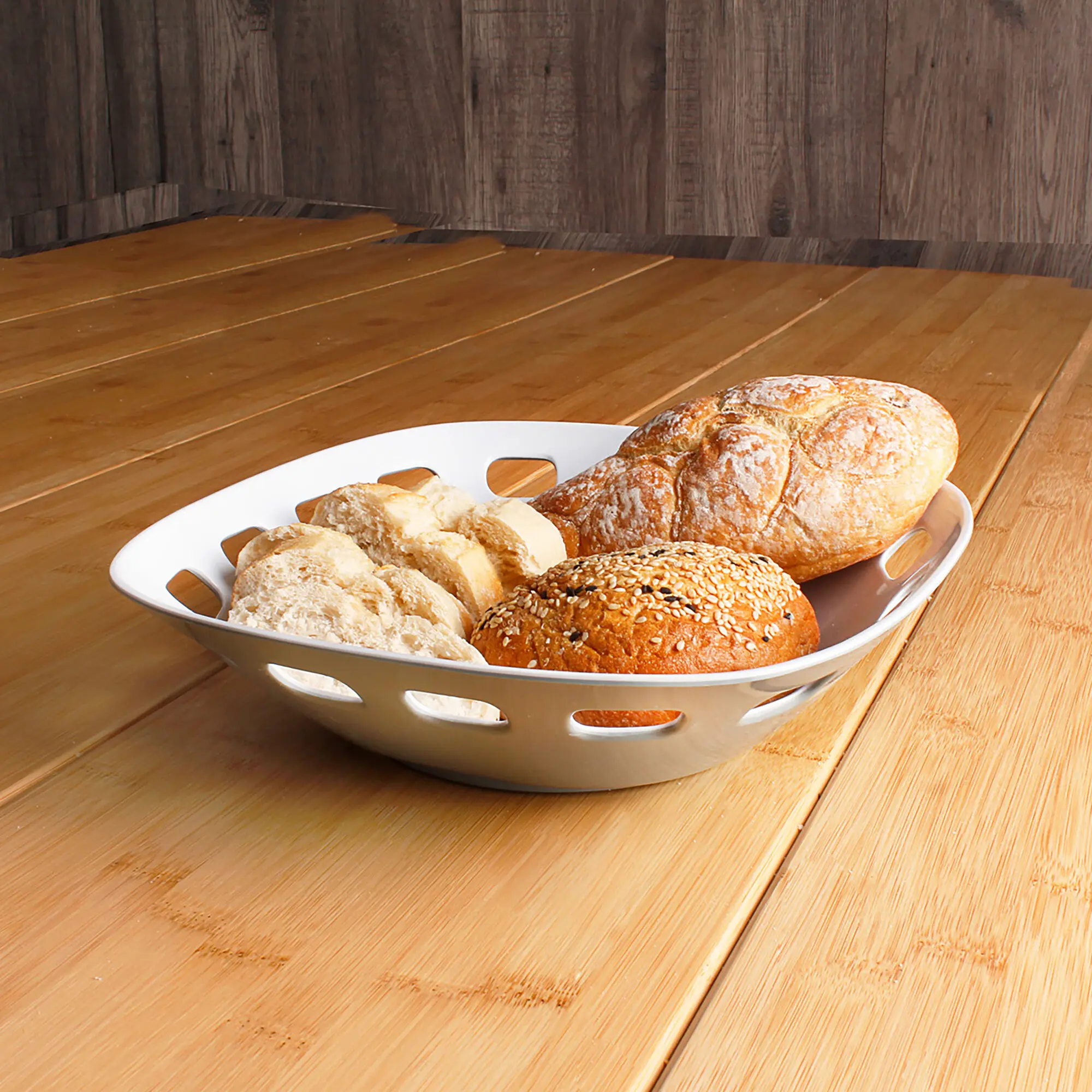 The bread basket is a good companion for your holidays. Fruits, bread, bread rolls or snacks have a fixed place, so that your table is always organised.