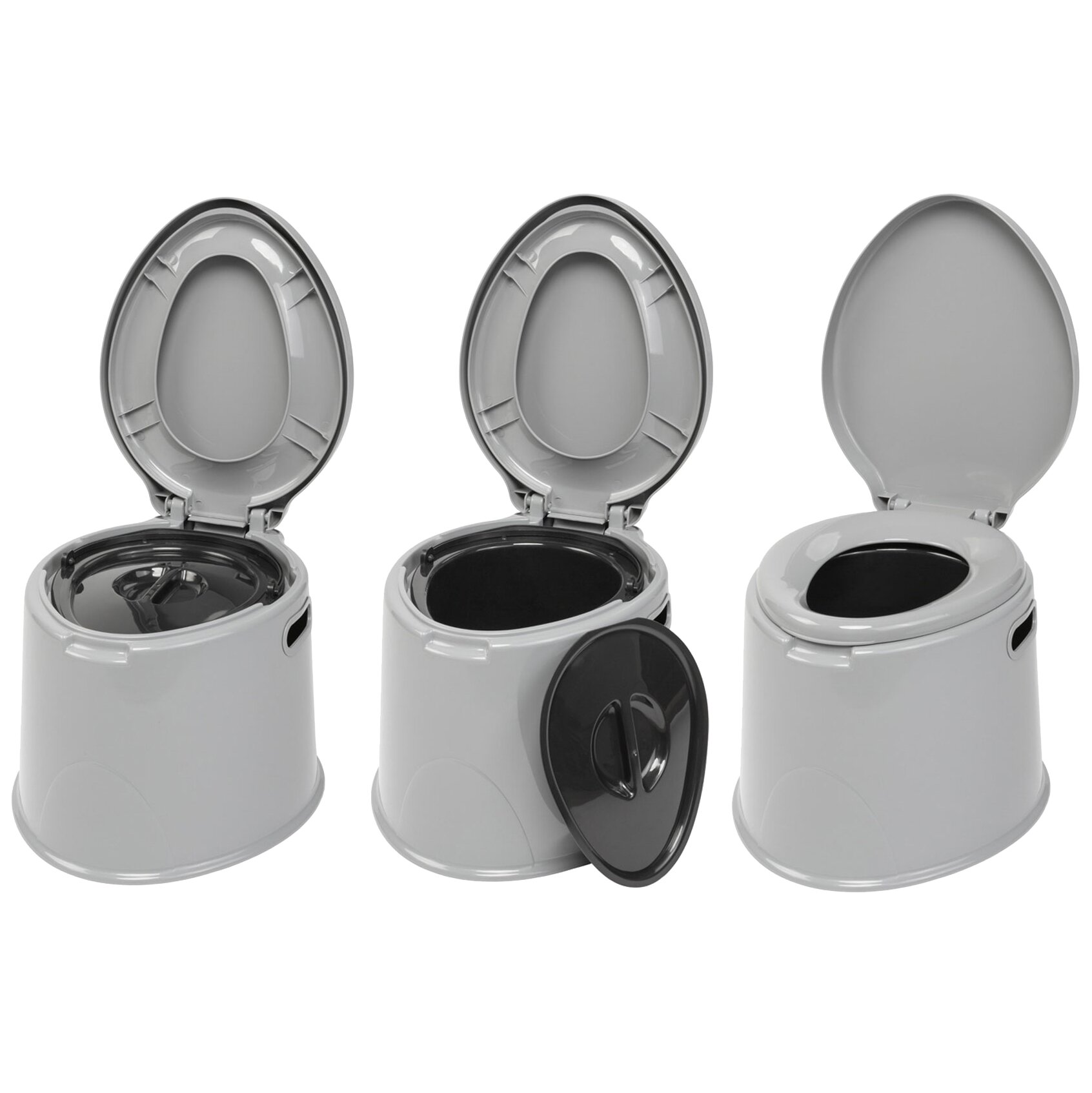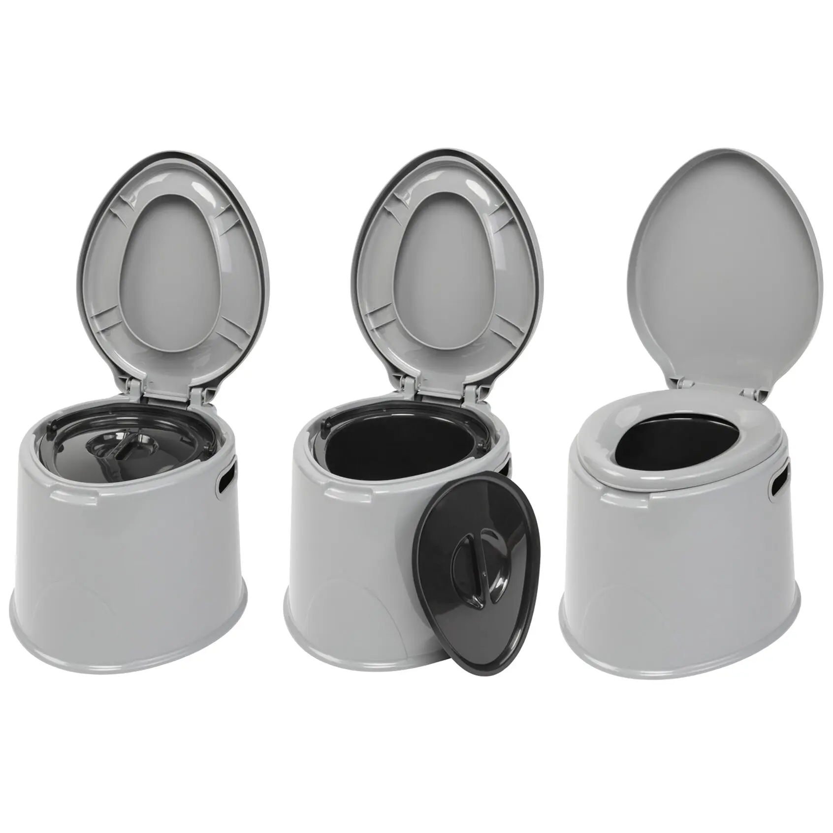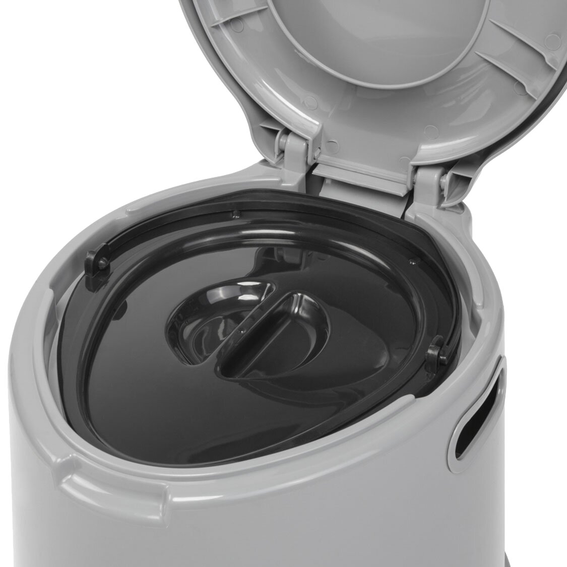 Modern, portable toilet with comfortable seat height and many functional details. Newly designed toilet body made of durable, hard plastic. Ready for use immediately, as it does not require installation. An environmentally friendly and cost-effective alternative to common chemical toilets.