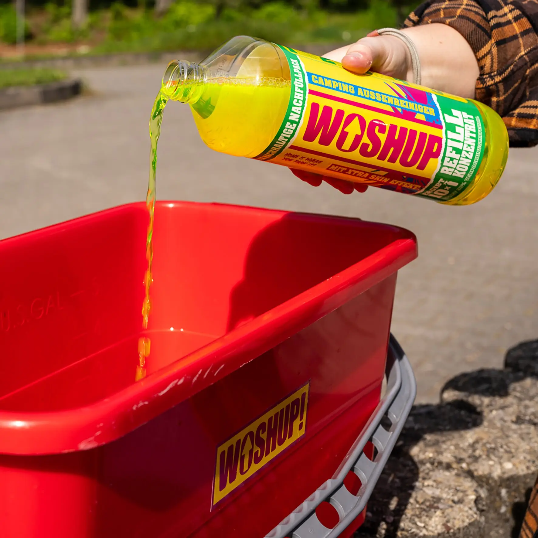 The camping cleaner refill concentrate offers a powerful cleaning solution for exterior surfaces. The Xtra Skin effect reduces the need for subsequent washes and protects the surface. The biodegradable formula saves water and is particularly environmentally friendly.