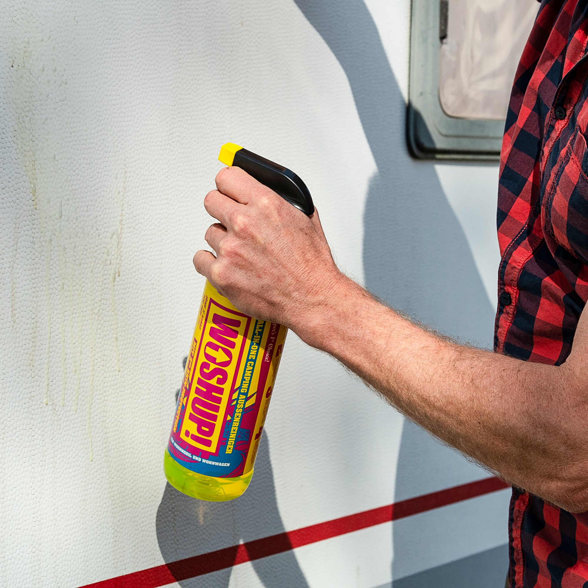This camping cleaner is ready to use and ideal for cleaning exterior surfaces. The innovative Xtra Skin effect ensures that fewer follow-up washes are necessary. The formula is biodegradable and helps to save water.