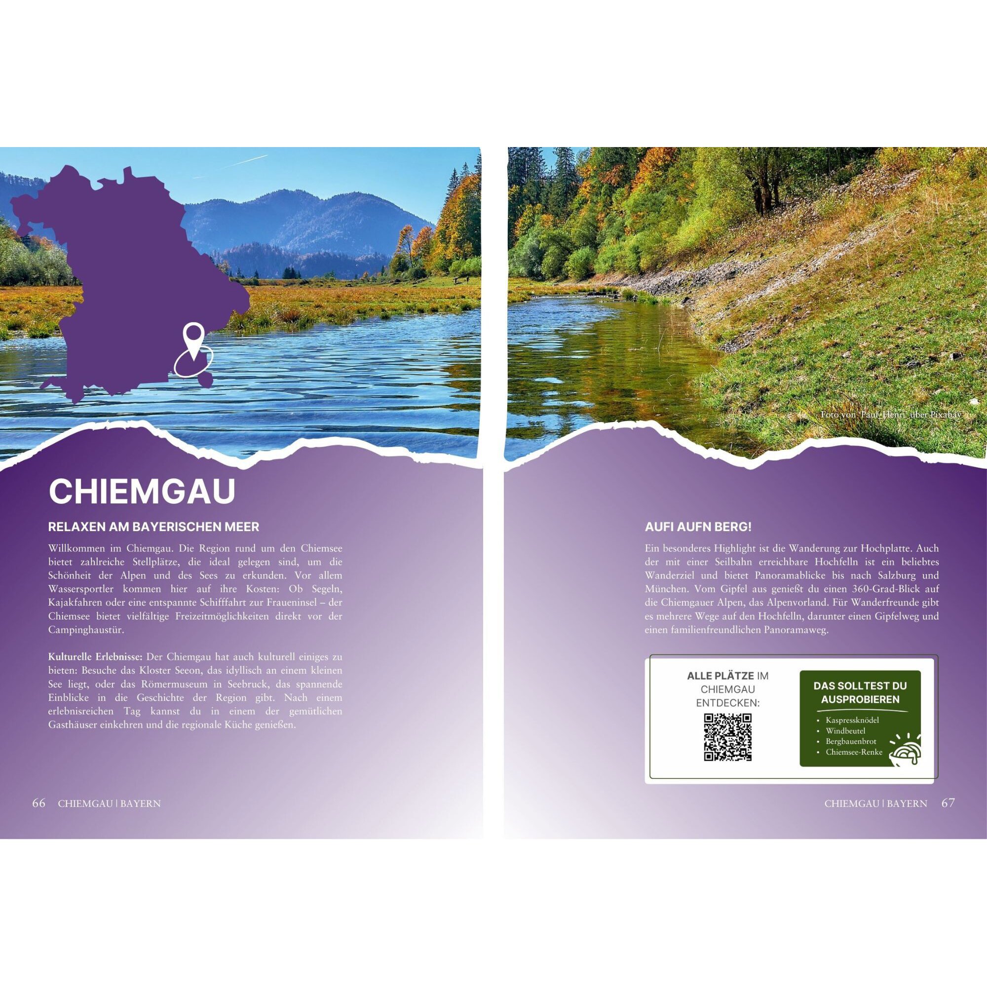 Discover the most beautiful regions of Germany and find special campsites away from the hustle and bustle. This campsite guide is full of insider tips from private hosts, exclusive recommendations and experiences in the heart of nature. Perfect for campers with motorhomes, tents or vans! Language: German.