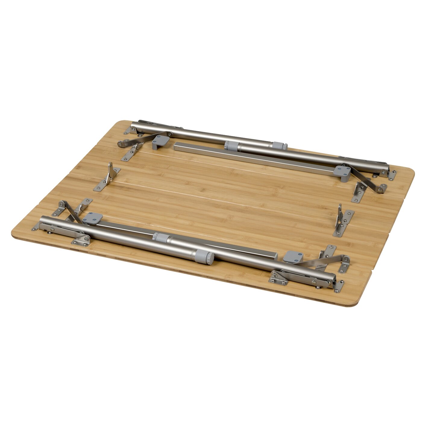 The height-adjustable camping table Suffolk features a waterproof tabletop made of bamboo slats and four telescopically adjustable table legs made of aircraft aluminium. When folded, the table only takes up little space. Incl. carry bag.