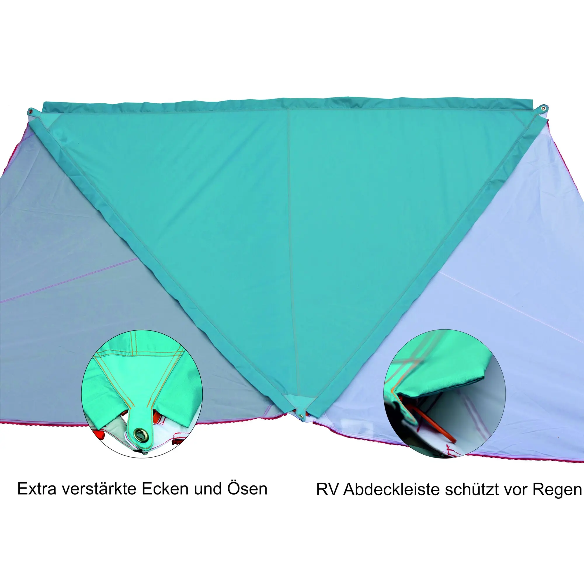 The Bent Canvas awning with zip cover provides you with a dry space when using several Canvas awnings. The cover for the zips is attached on all 3 sides. UV 60 protection. Side length: 250 cm.