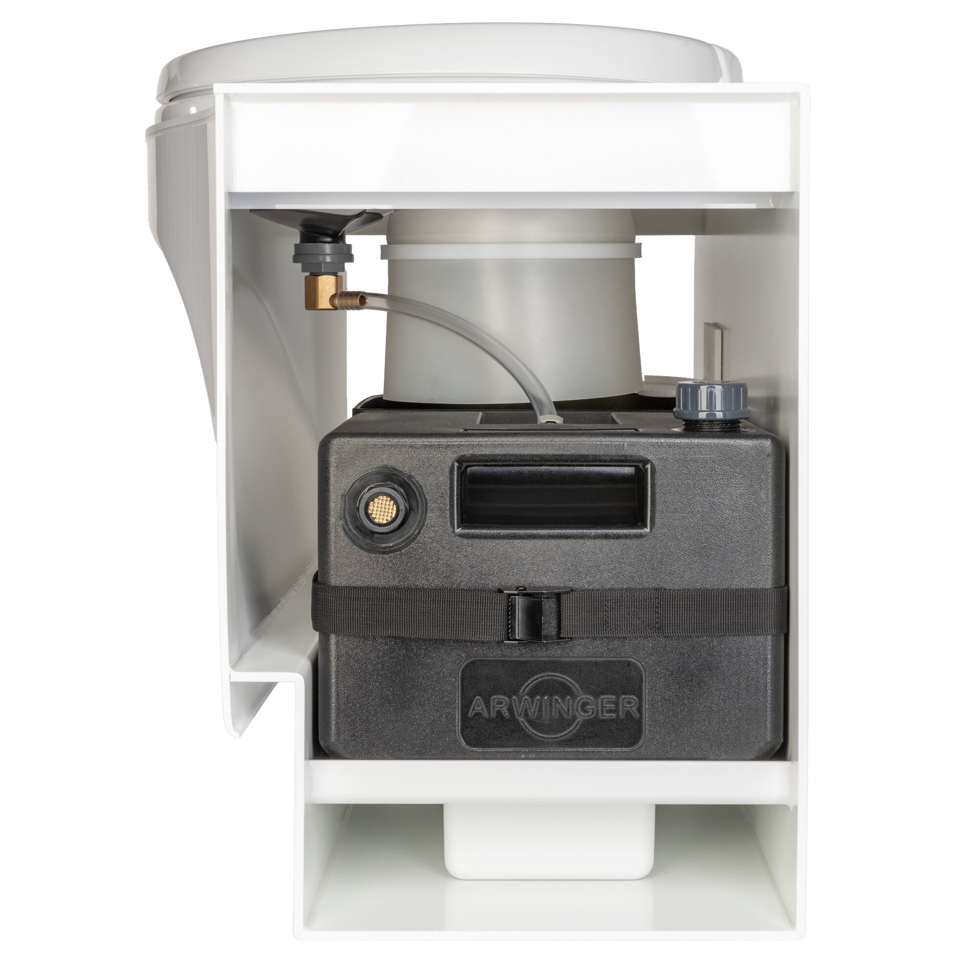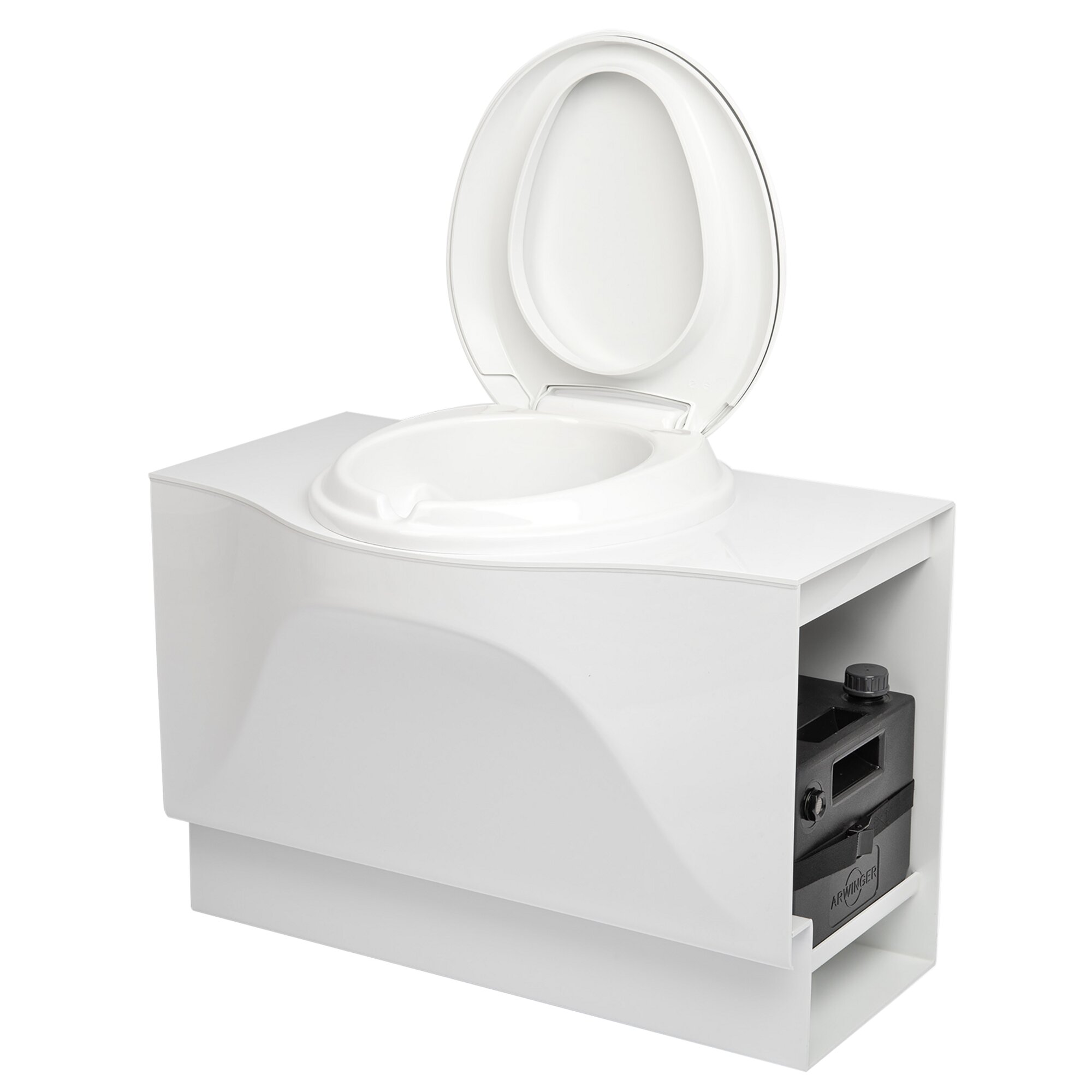 The Arwinger cassette composting toilet kit offers a comfortable, chemical-free alternative for your Thetford C400 toilet. The replacement is done without changes to the bathroom design and uses the existing service hatch. The composting toilet collects solids and liquids separately in special containers. The solids container has a capacity of approximately 9 l, while the liquid container holds 7.7 l. A visual indicator shows the fill level of the liquid tank.