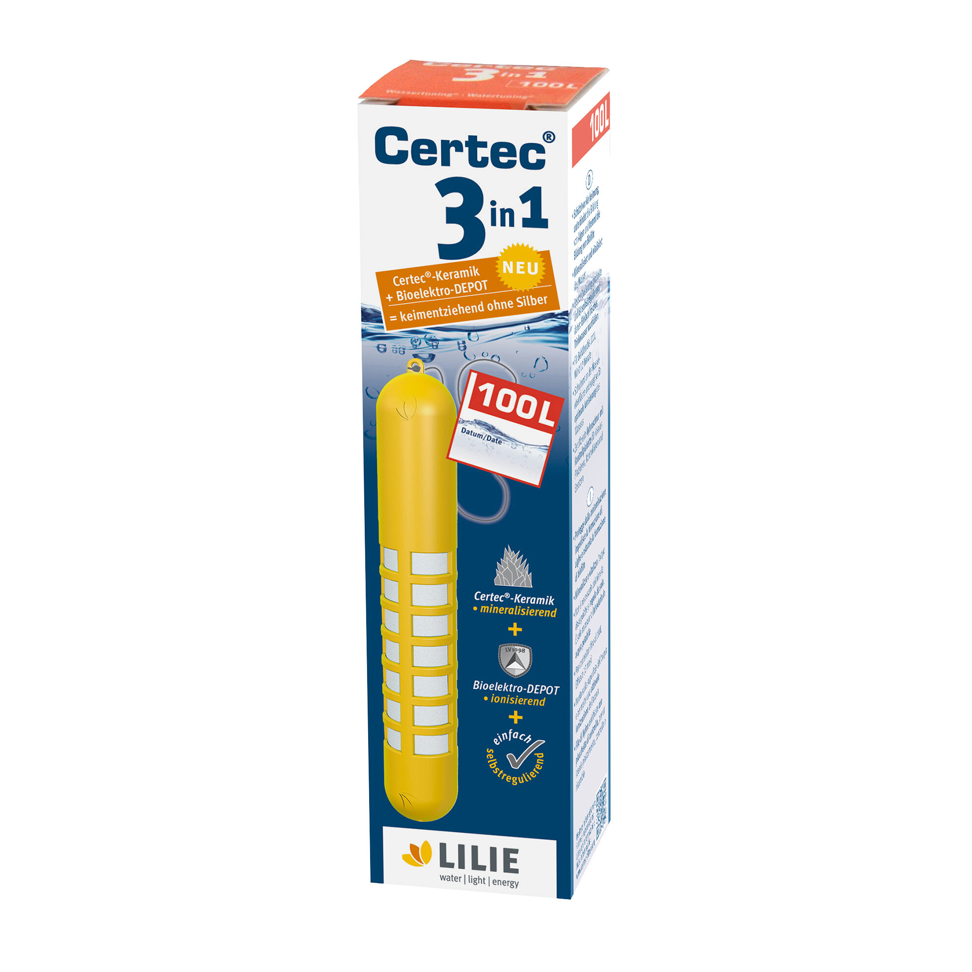 The threefold effect of the capsule stops the formation of bacteria and biofilm in tanks. It also mineralises the water. Automatic regulation of negative ion transfer. With nylon string with control badge. Lasts up to 12 months.