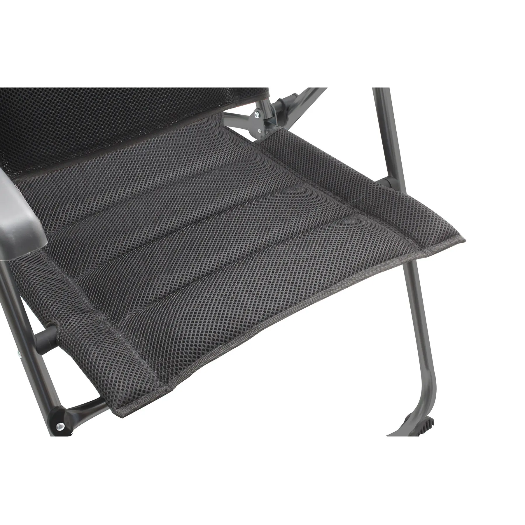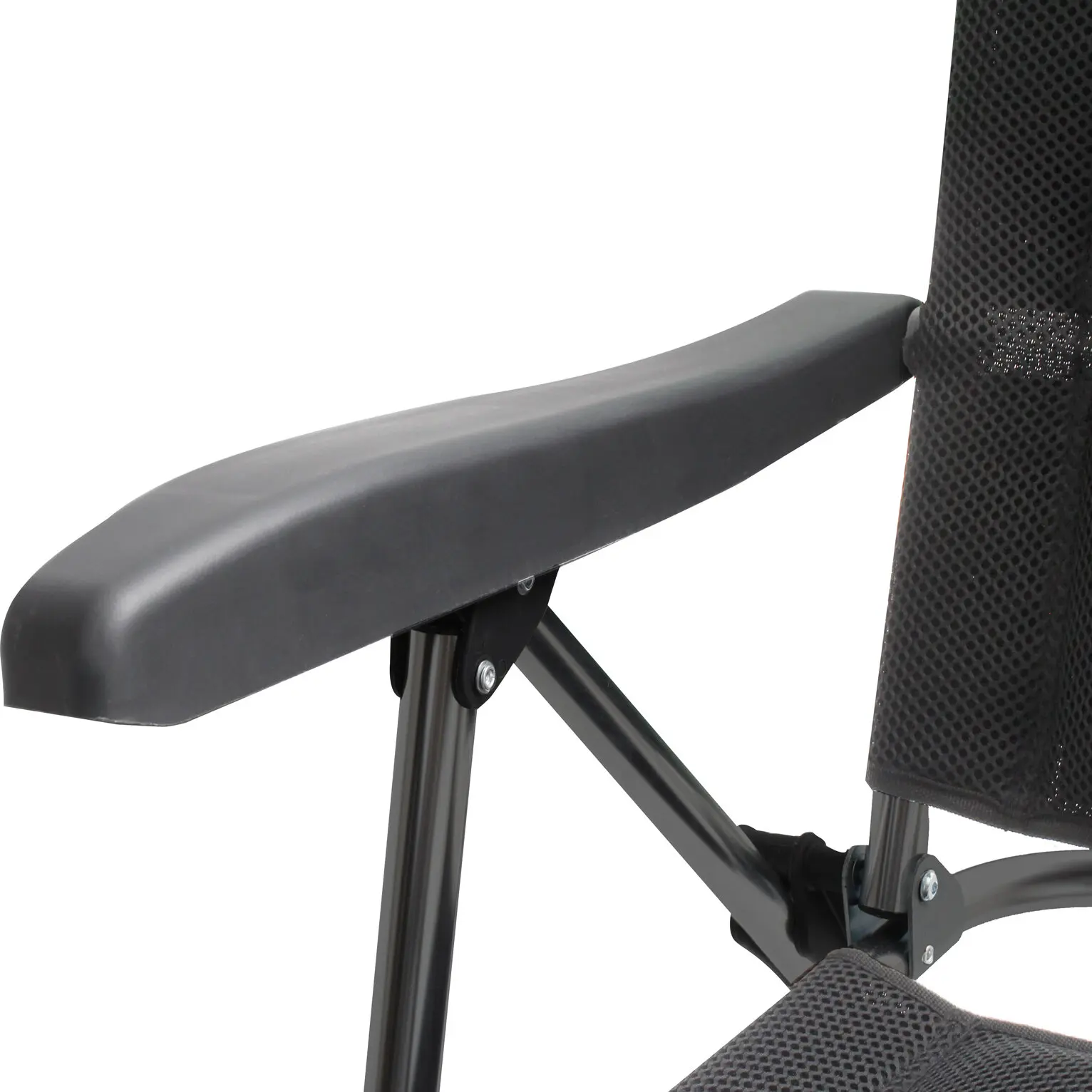 The space-saving aluminium foldable chair has a low, fixed backrest and loop legs. The cover is made of comfortable 3D fabric.