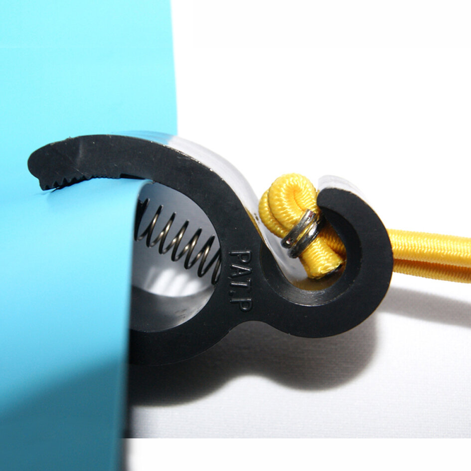 Cloth clamp made of plastic with rubber tensioner.