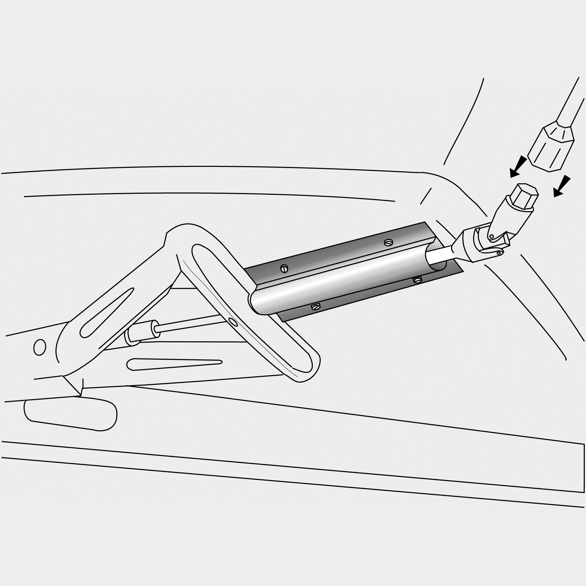 The floor area where the plastic profile section will be fitted must be clear of, for example, pipes and other components. Vehicles with outer mud flap require a drilling hole. Four plastic profile sections are sawn to length as required, and then, using wood screws, fastened to the floor of the vehicle to act as a guide for the crank handle.