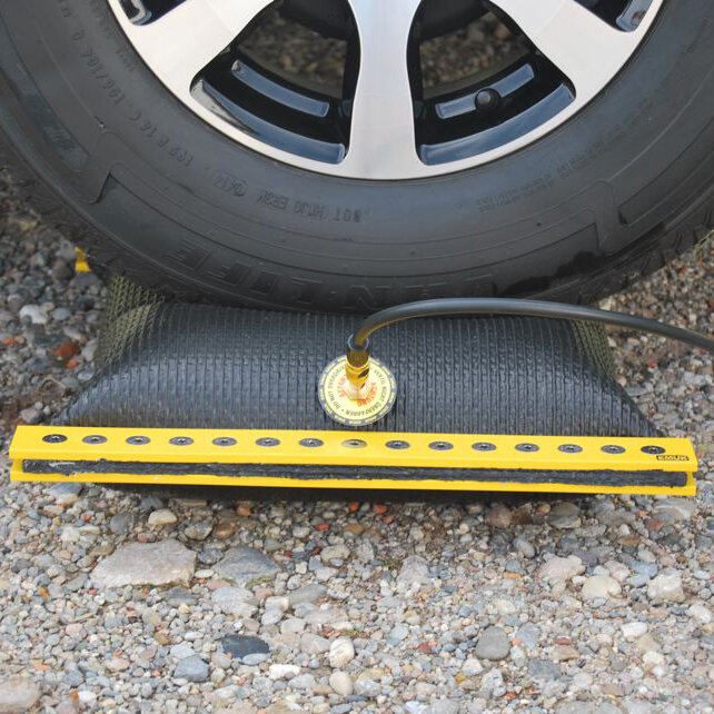 The EMUK Air-Lift® is a highly resilient compressed air lifting cushion developed particularly for camping vehicles. All height differences between 1.5 and 20 cm can be compensated infinitely. The EMUK Air-Lift® can bear a load of up to 11 t. It is very easy to use. The cushion is simply placed beneath the wheel you want to lift and levelled with a hand/foot pump or a 12 V mini compressor. The thick rubber skin with aramid fibres provides the air cushion with sufficient protection against external impact from stones, debris and UV radiation. The ribbed profile provides the wheels that are to be lifted with a non-slip grip. Also available for twin tyres, tandem axles or expedition trucks on request.