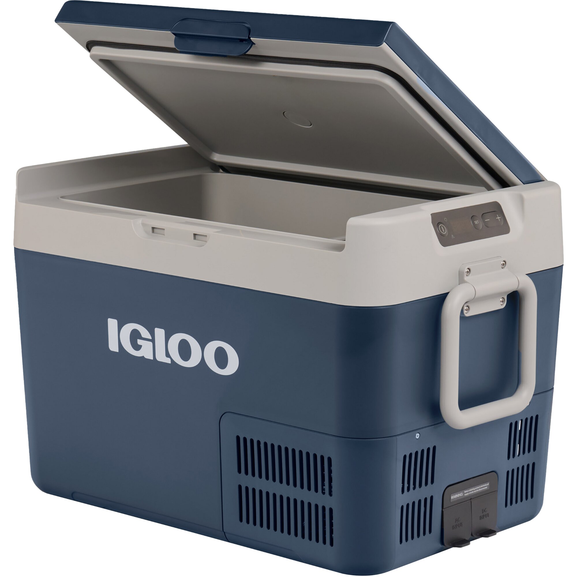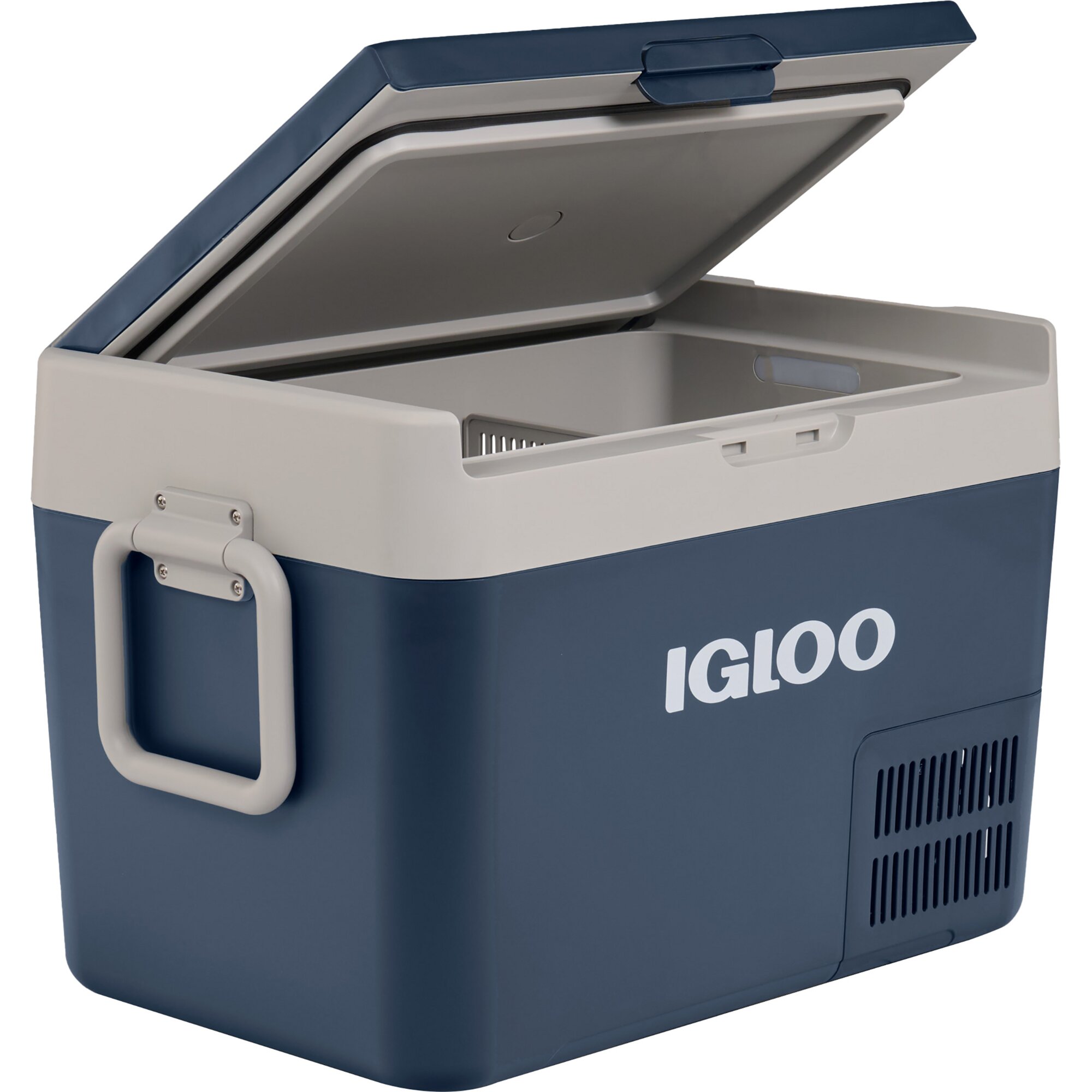 The versatile Igloo ICF 80DZ offers the special advantage of 2-zone cooling. It has 2 separate compartments with 44 and 34 l net capacity respectively, separate lids and separate temperature control. This means that food and drinks can be stored at different ideal temperatures. The efficient compressor system ensures temperature stability in the box up to +32 °C ambient temperature. Despite its size, the ICF80DZ is easy to carry. This is ensured by the 2 sturdy folding handles on the sides.