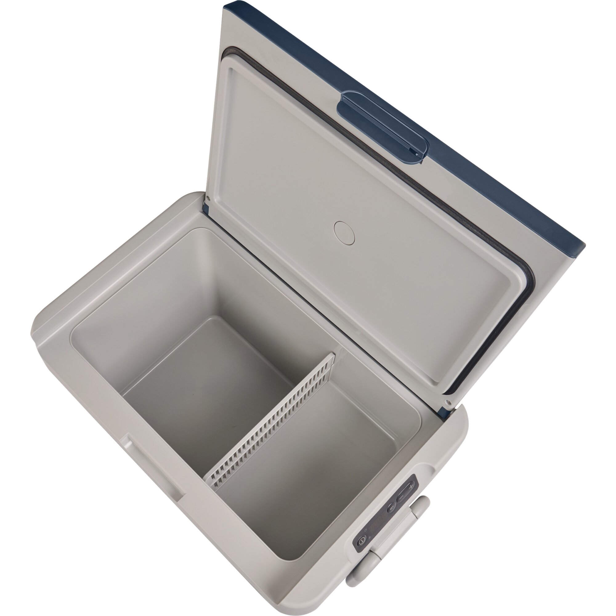 All ICF compressor coolers can be set between +20 °C and -18 °C and remain stable regardless of the ambient temperature. They can be connected to the electrical systems of cars, motorhomes, camper vans or large lorries. The current temperature is shown on a digital display. A practical divider grid keeps the ICF18, ICF32, ICF40 and ICF60 tidy.