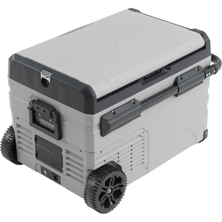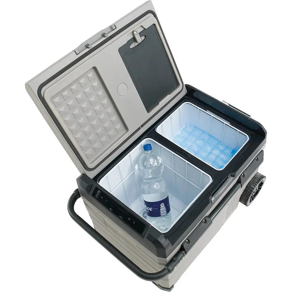 The Arctic Frost compressor coolers are available in 3 sizes with net capacities of 37, 45 and 54 l. They keep the contents cool from +20 °C to -20 °C in 2 separately adjustable temperature zones, which can be controlled via an LED display or the free Outwell app. Retaining straps are available as accessories to make transport easier. The coolers are equipped with an integrated bottle opener and interior lighting. An internal double wire basket and a cutting board are included.