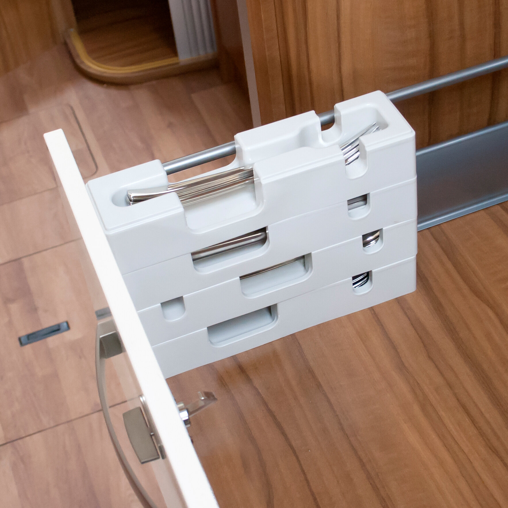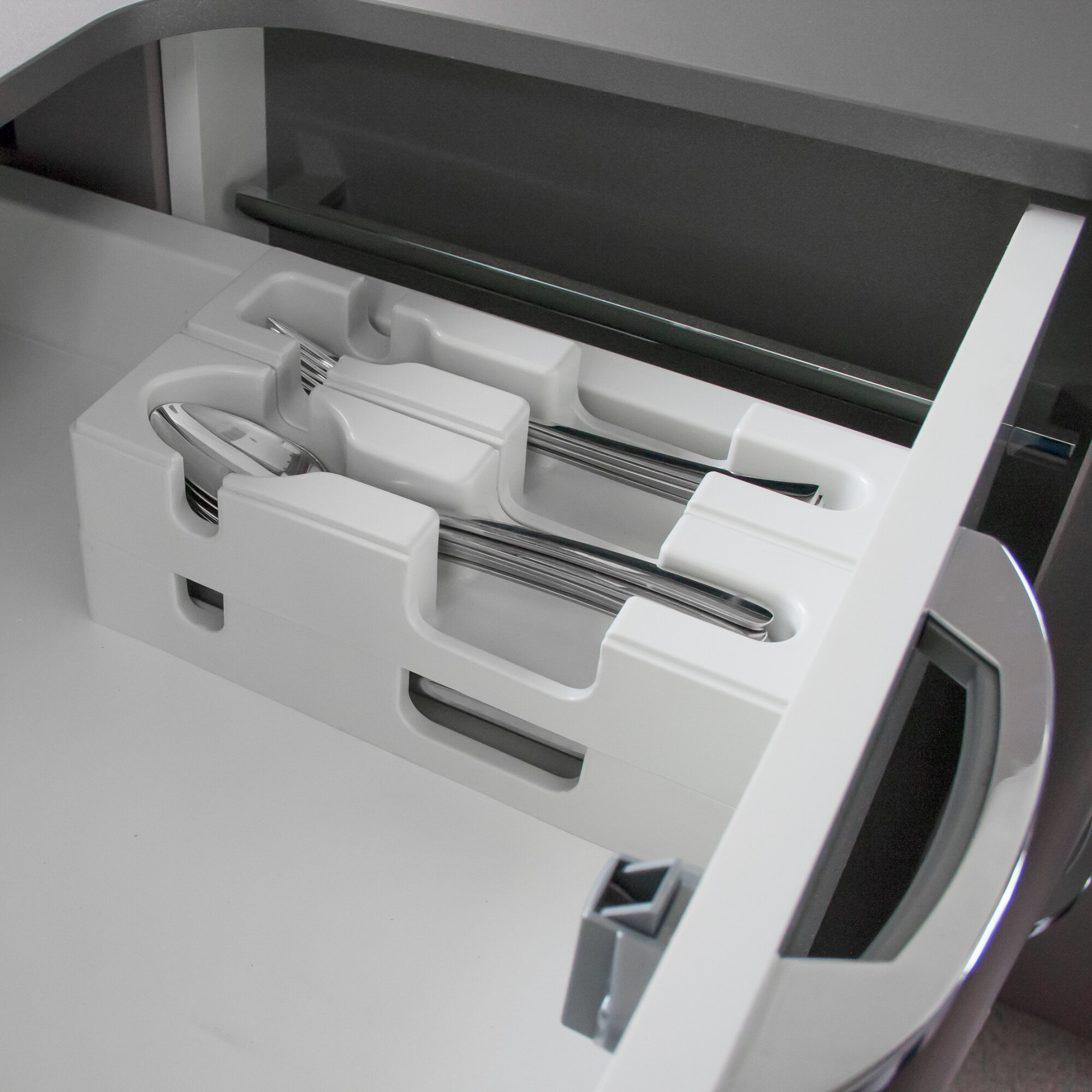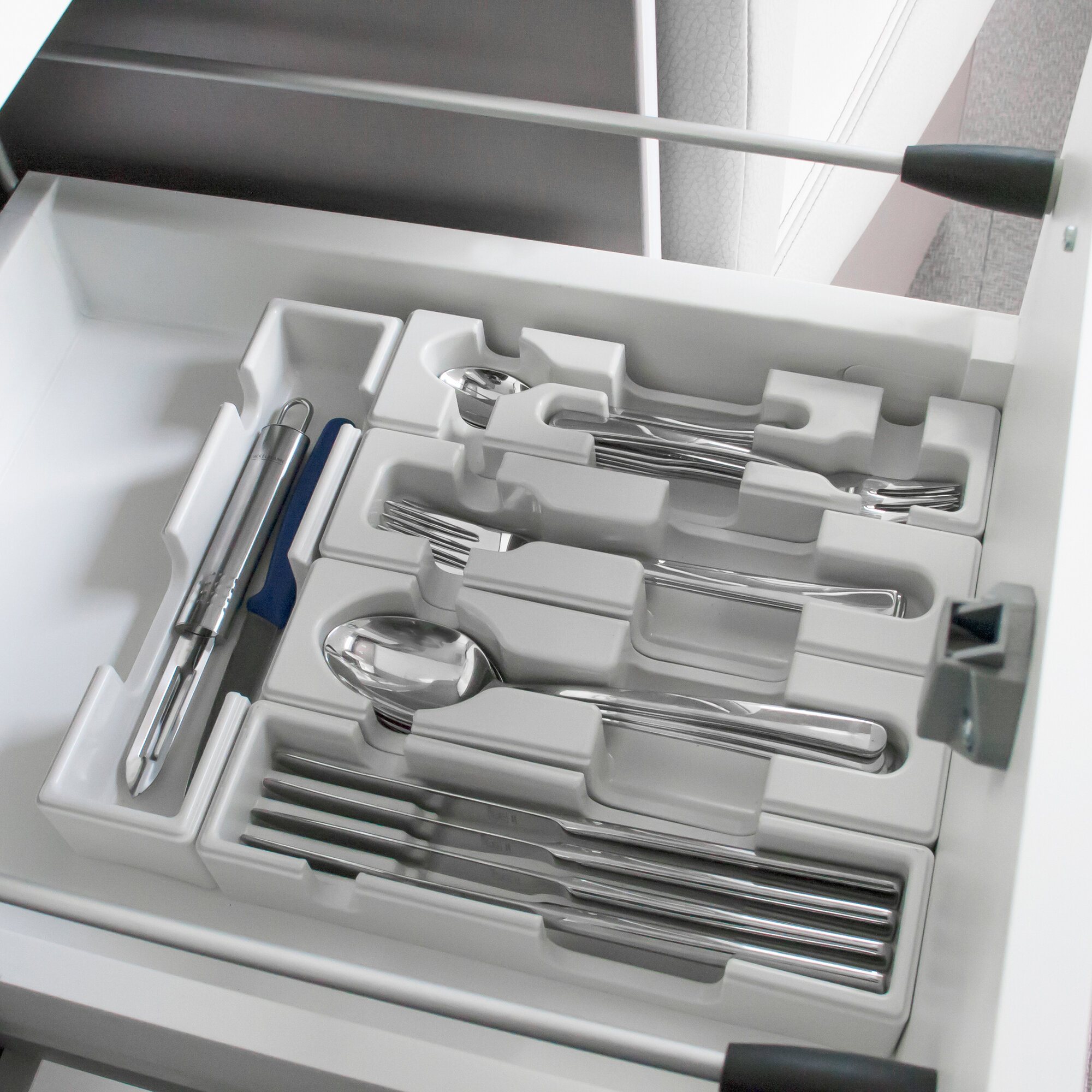 The 4-piece set consists of one insert each for spoons, forks, knives and coffee spoons/dessert forks.