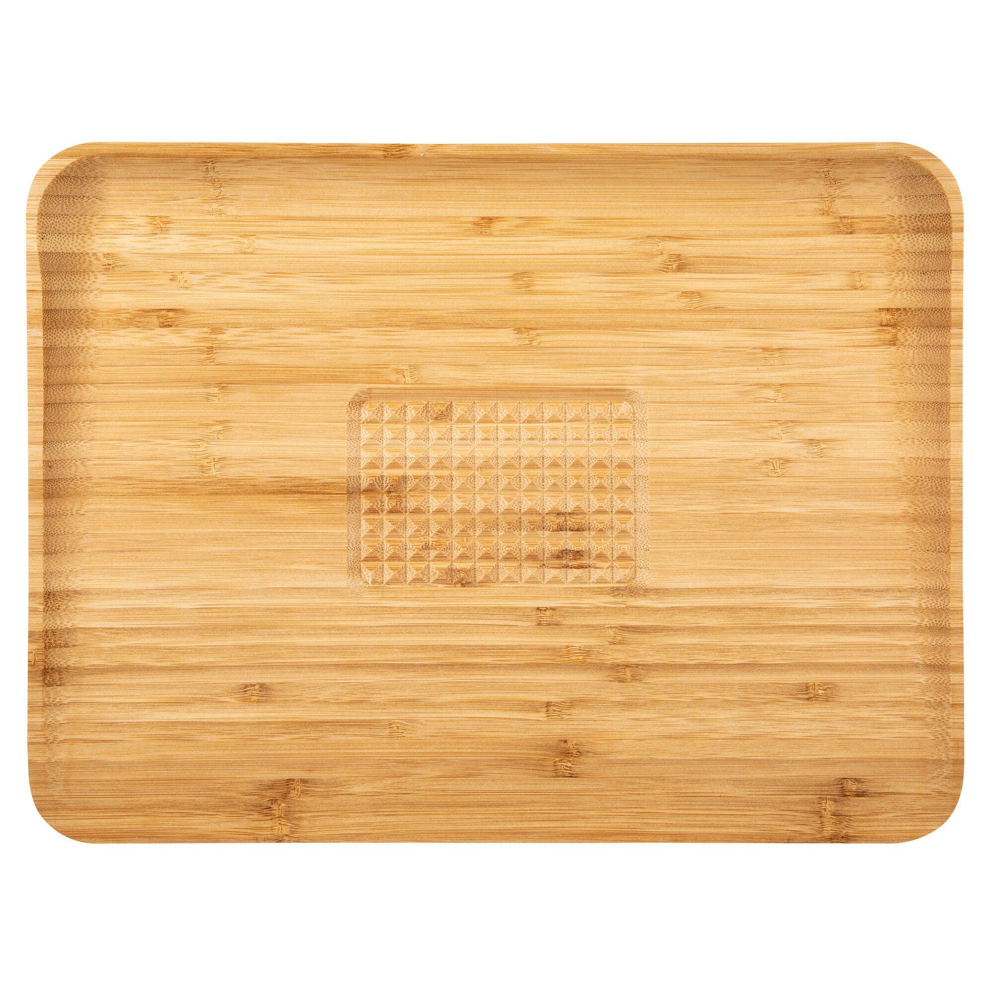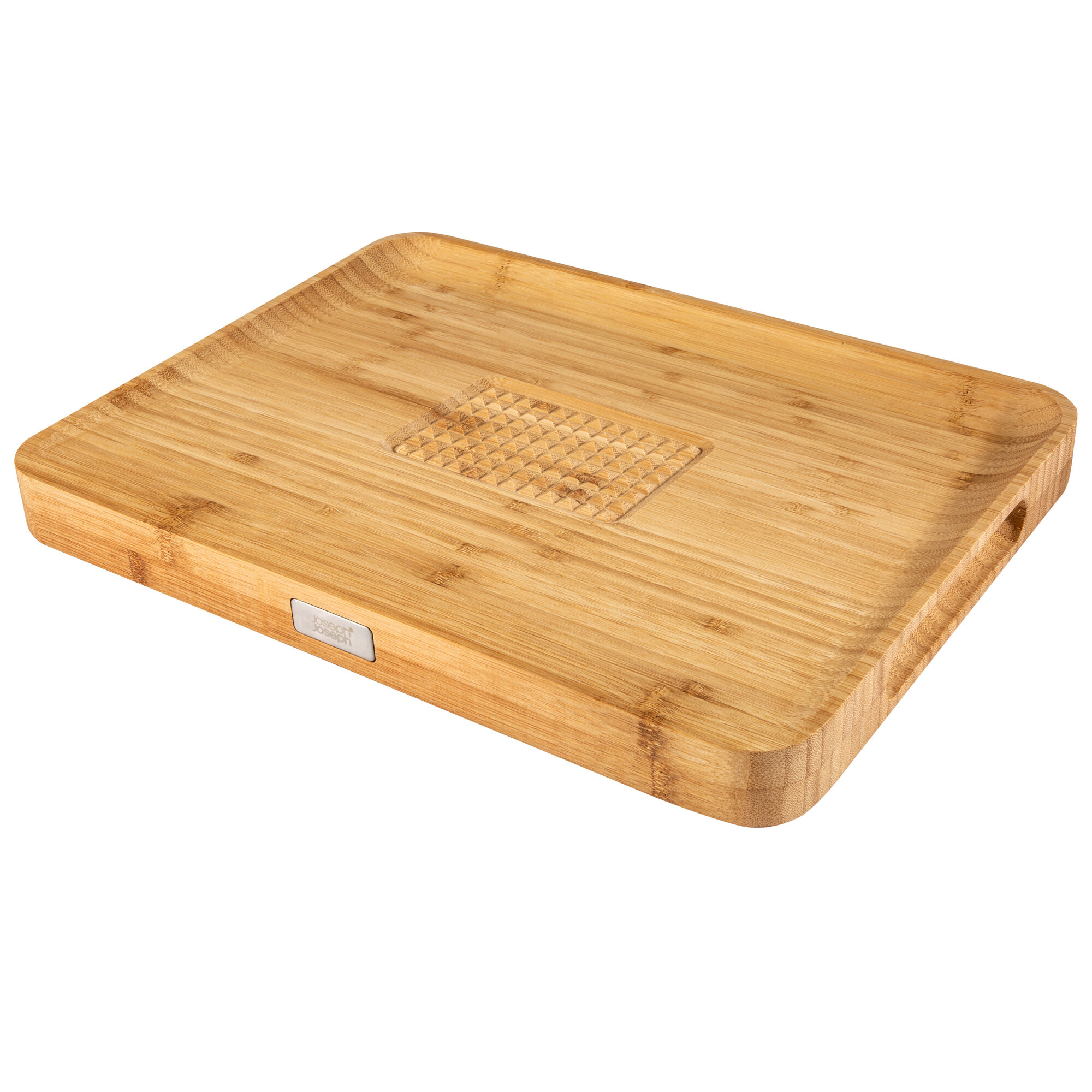 The grooved surface in the centre holds meat, vegetables and bread firmly in place while you are cutting. Thanks to the slanted cutting surface, crumbs and liquids are collected and can easily be poured off afterwards.