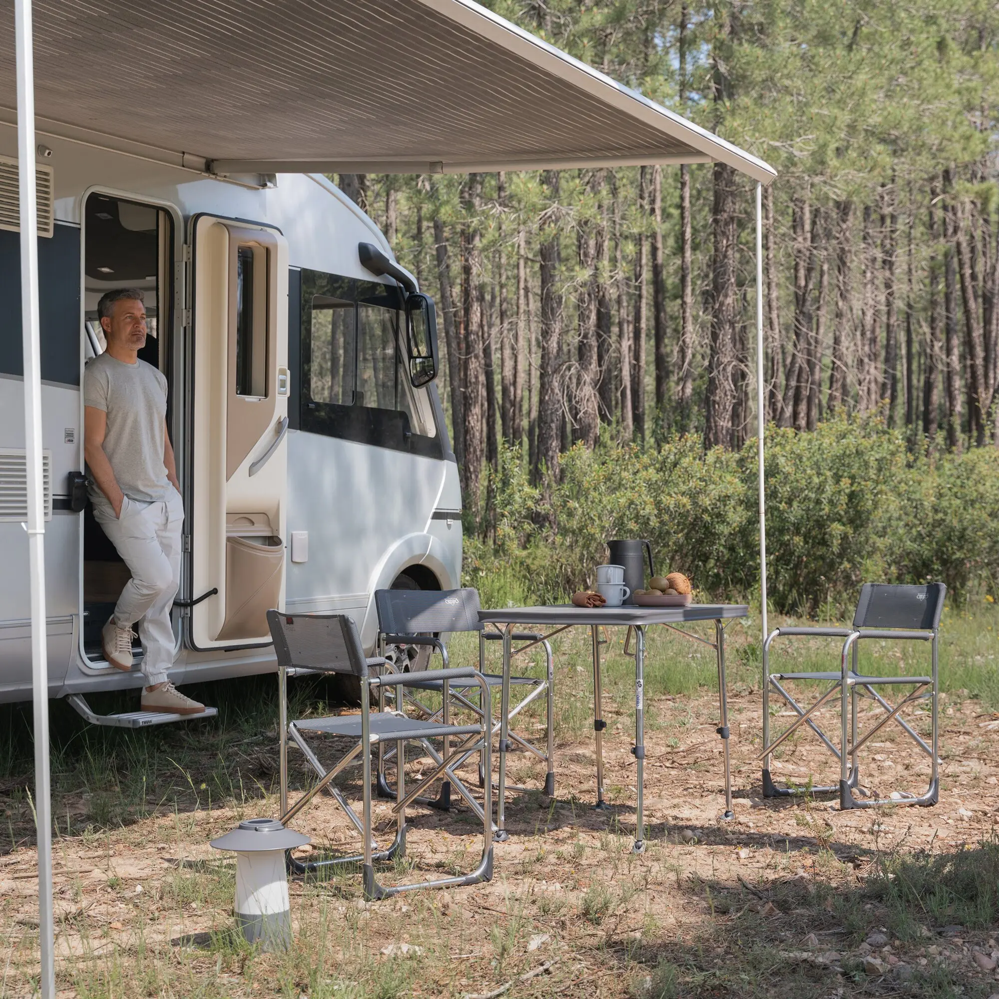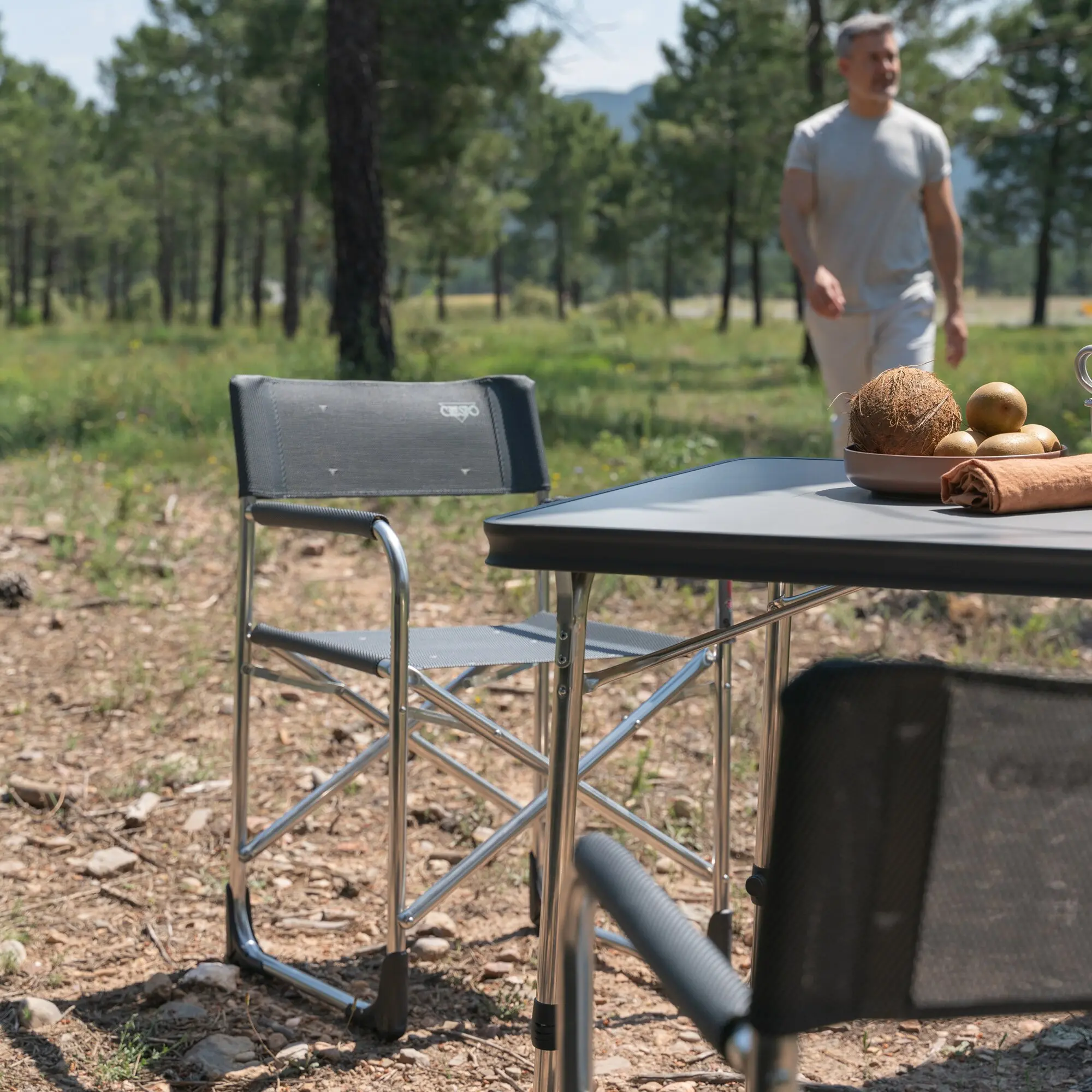 Director's chair with comfortable armrests. Ideal for reading when on holiday. Multifibre cover. Folding.