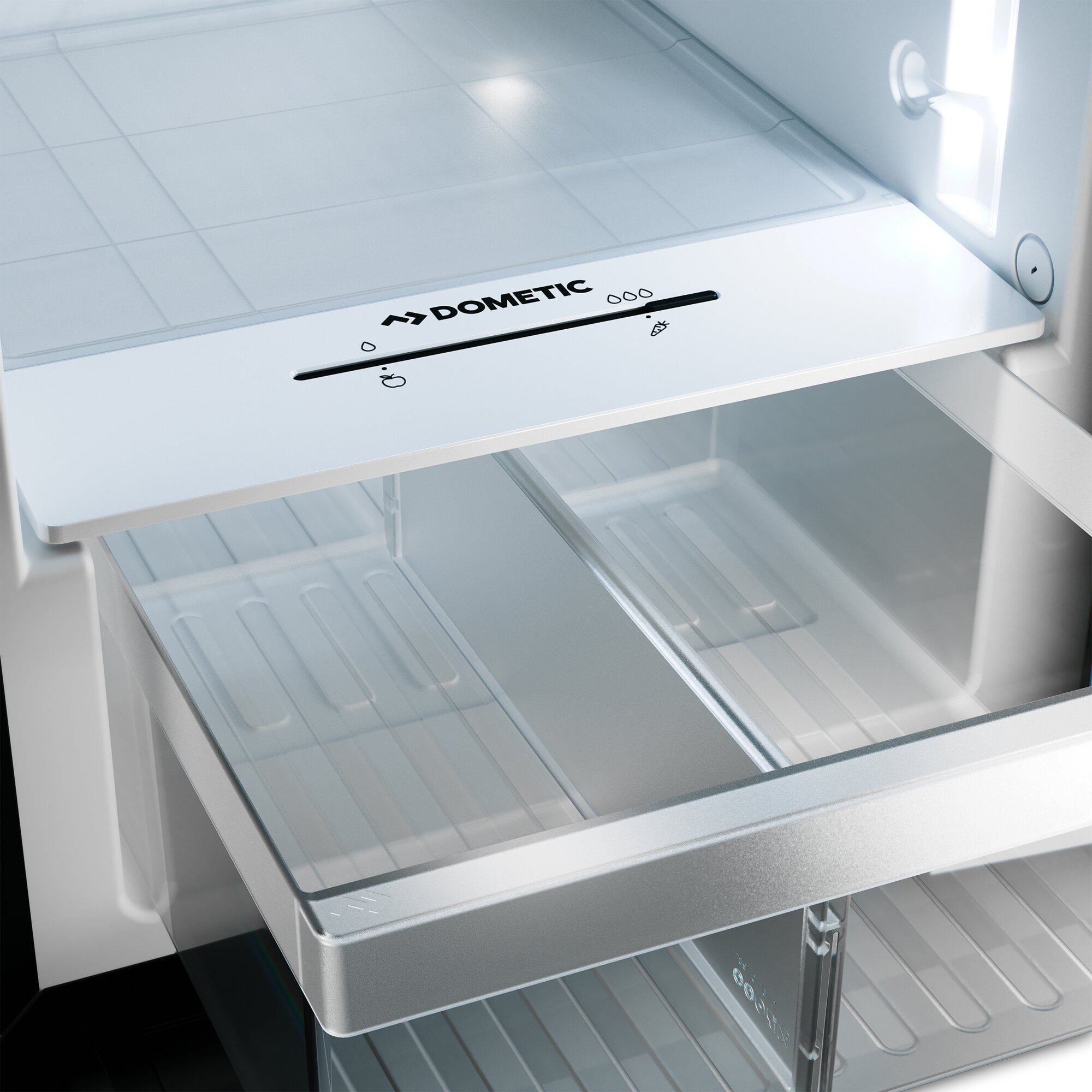 The 12-V compressor of this series is very frugal in its energy consumption compared to other absorber models. A space-saving feature is that there is no need to carry additional gas for power supply. Thanks to its boost function, it is possible to cool down goods quickly; at night it operates very quietly and economically in the corresponding mode. As with the absorber versions of the series 10, the RCD 10.5ET and RCD 10.5.XET are very spacious units with 2 doors for the freezer and refrigerator compartments. The RCL 10.4ET version is used wherever the space in width available is limited. The two RC 10.4T versions were specifically developed by Dometic for installation into the Fiat Ducato. With the versions RC 10.4T and RCL 10.4ET, the freezer compartment is removable.