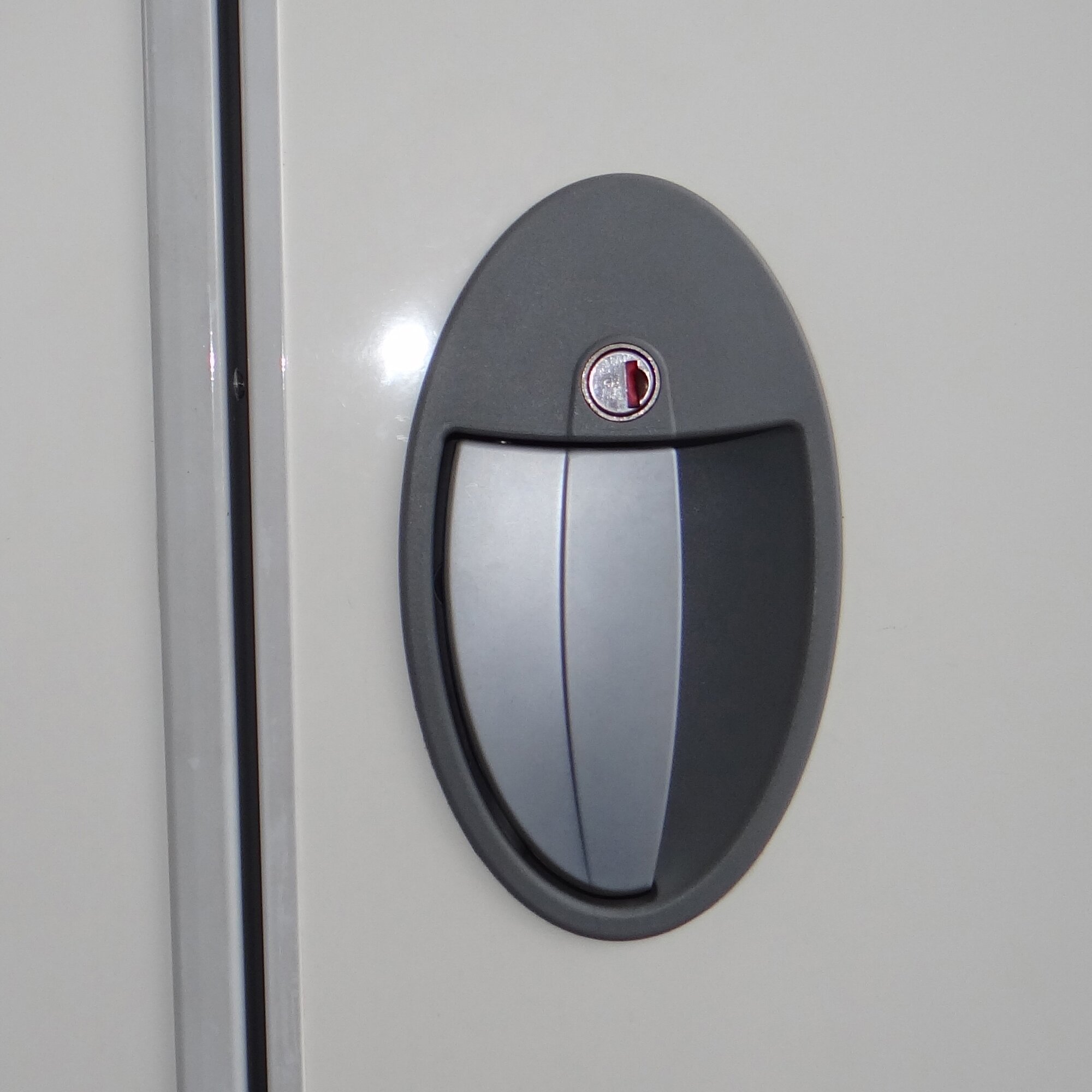 | Zusatzinformation: | Wird von innen in die Griffmulde eingesetzt. Dadurch wird die Verriegelung blockiert, sodass ein Öffnen von außen nicht möglich ist. Türsicherung passend für Reisemobile mit einteiliger Tür ab 2015 von Hobby, Eura Mobil, LMC und Hymer. |