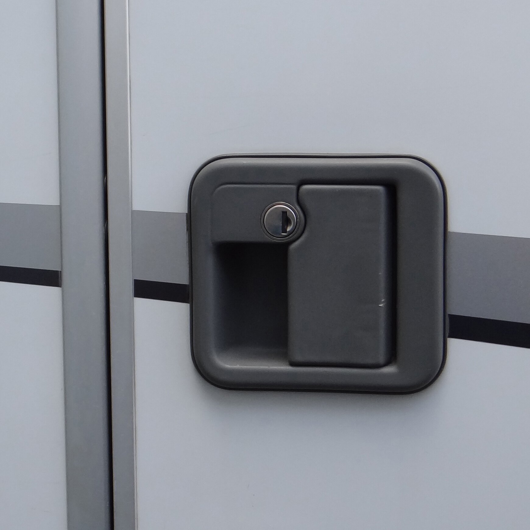 The Elefant prevents forceful, unauthorised opening of the motorhome door from the outside. The lock is inserted from the inside between the lock and the strike plate when the door is closed. This means that the door cannot be opened either from the outside or from the inside.