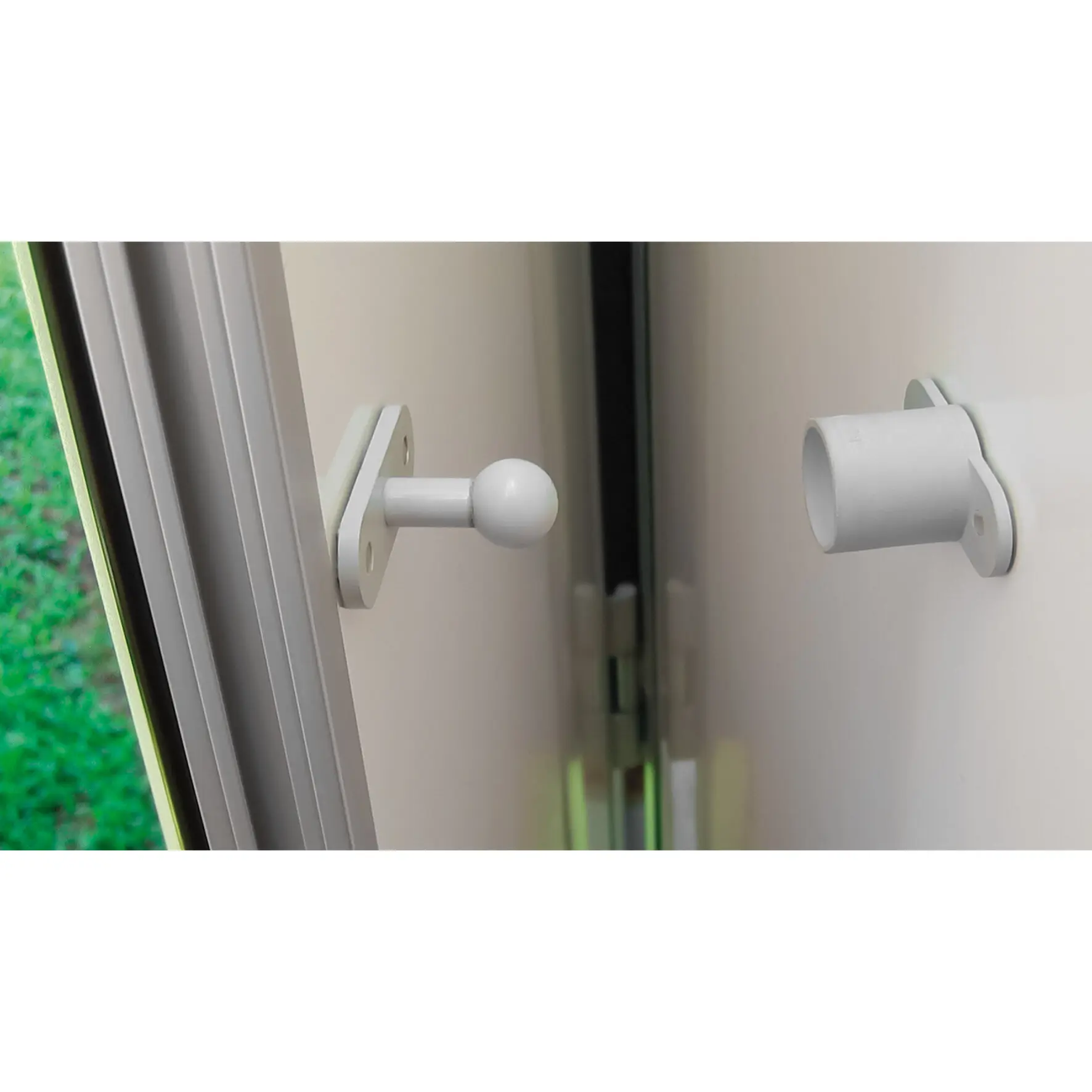 Convenient external plastic door stop to prevent the unintentional closing of your vehicle door. Suitable for motorhome/caravan doors and garages. Hole spacing: 40 mm.