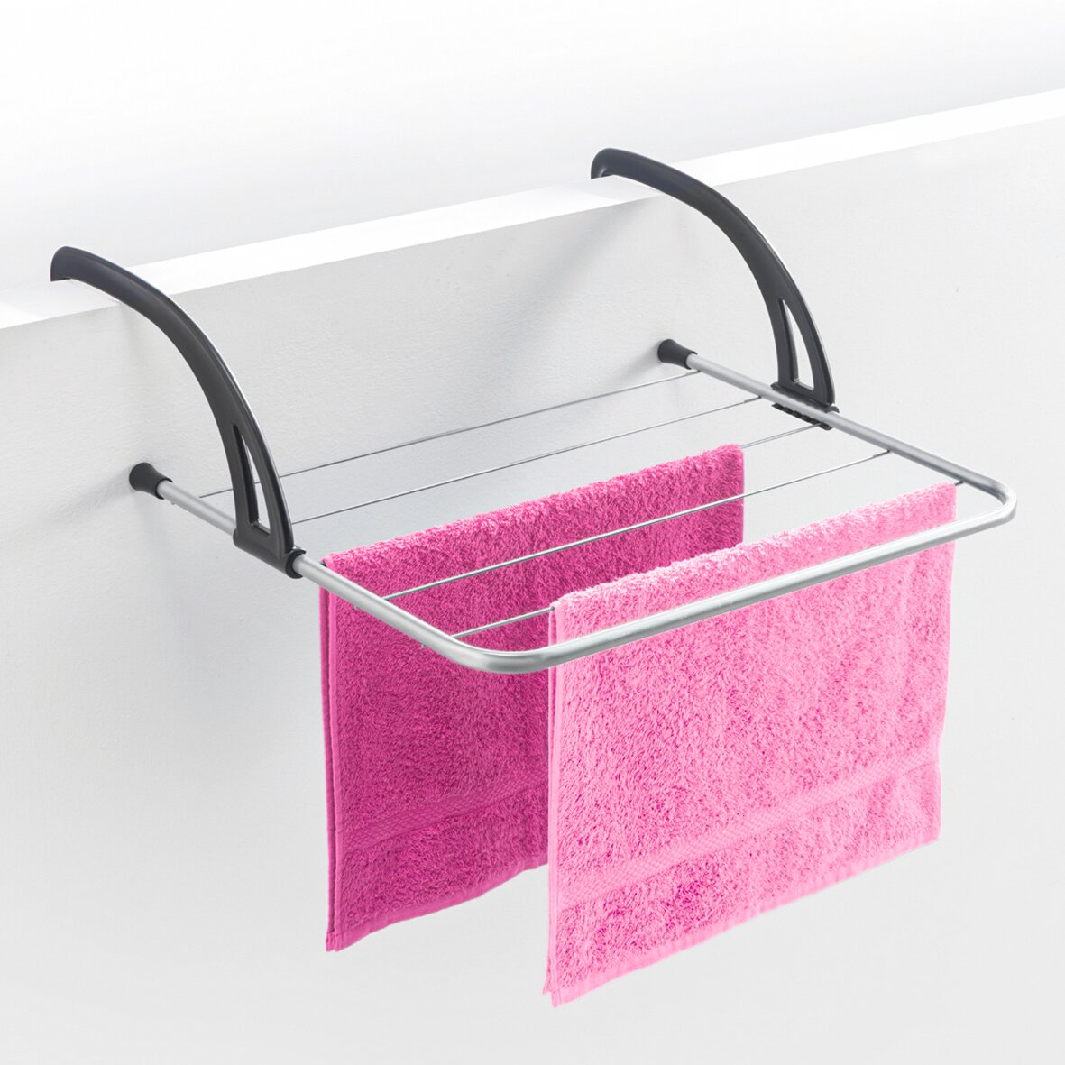 The heater and balcony drying rack can be adjusted to any depth and is thus flexibly adjustable to the optimum width for caravan windows, balconies, heaters, windows and railings. The drying rack can be folded up for storage. Drying length 3 m.