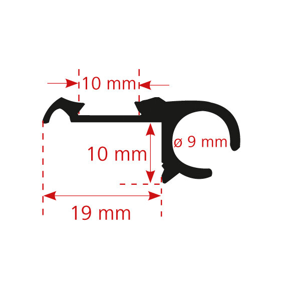 Aluminium rail with groove and piping rail for filler strip. Length 5 m. Price per piece.