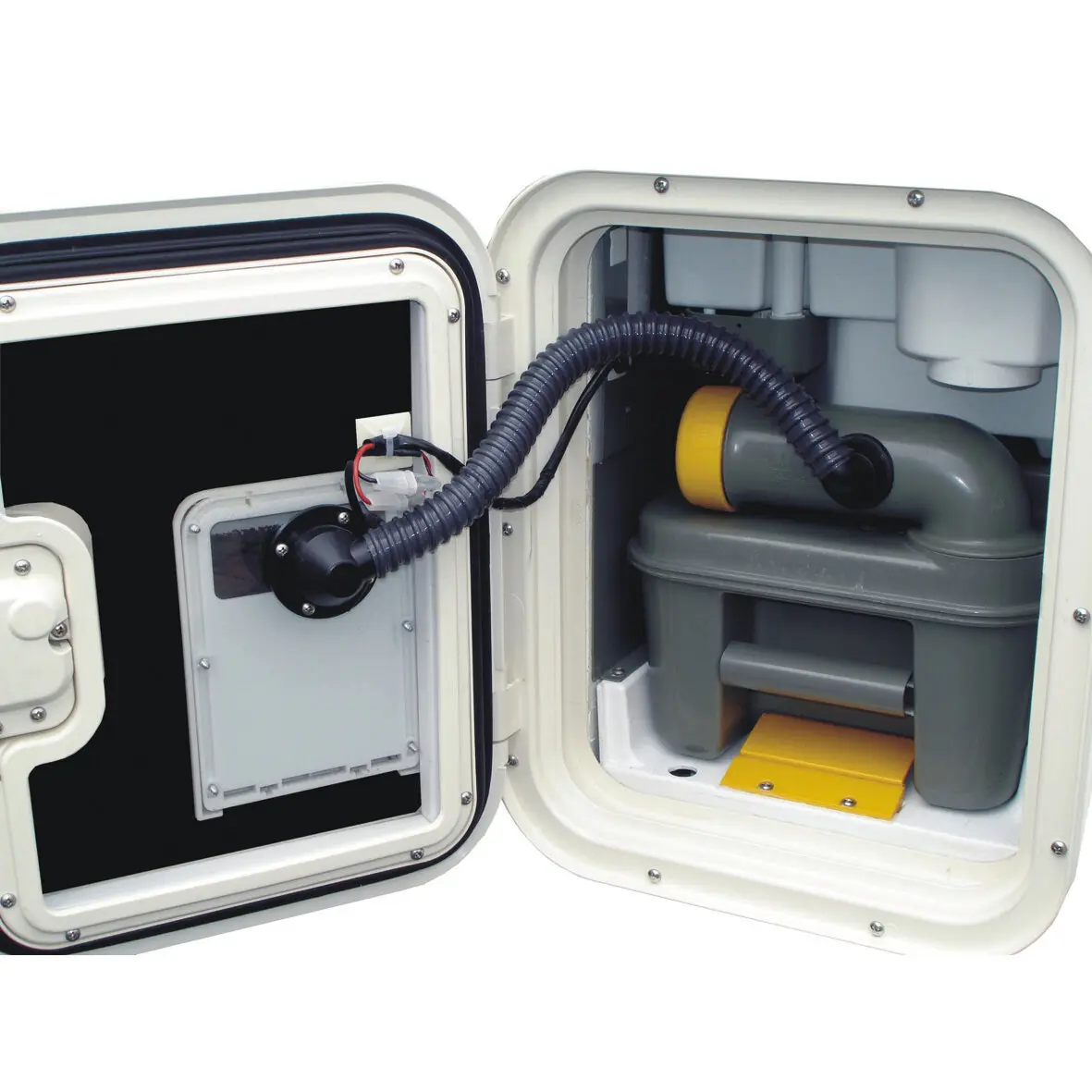 The SOG II compact system offers efficient ventilation via the floor for the camping toilets C2, C3 and C4. With a flexible filter cartridge and a fan, it can be installed up to three metres away from the toilet and is ideal for caravans with a service door leading into the awning. It neutralises odours and is easy to retrofit to keep the caravan fresh and hygienic.