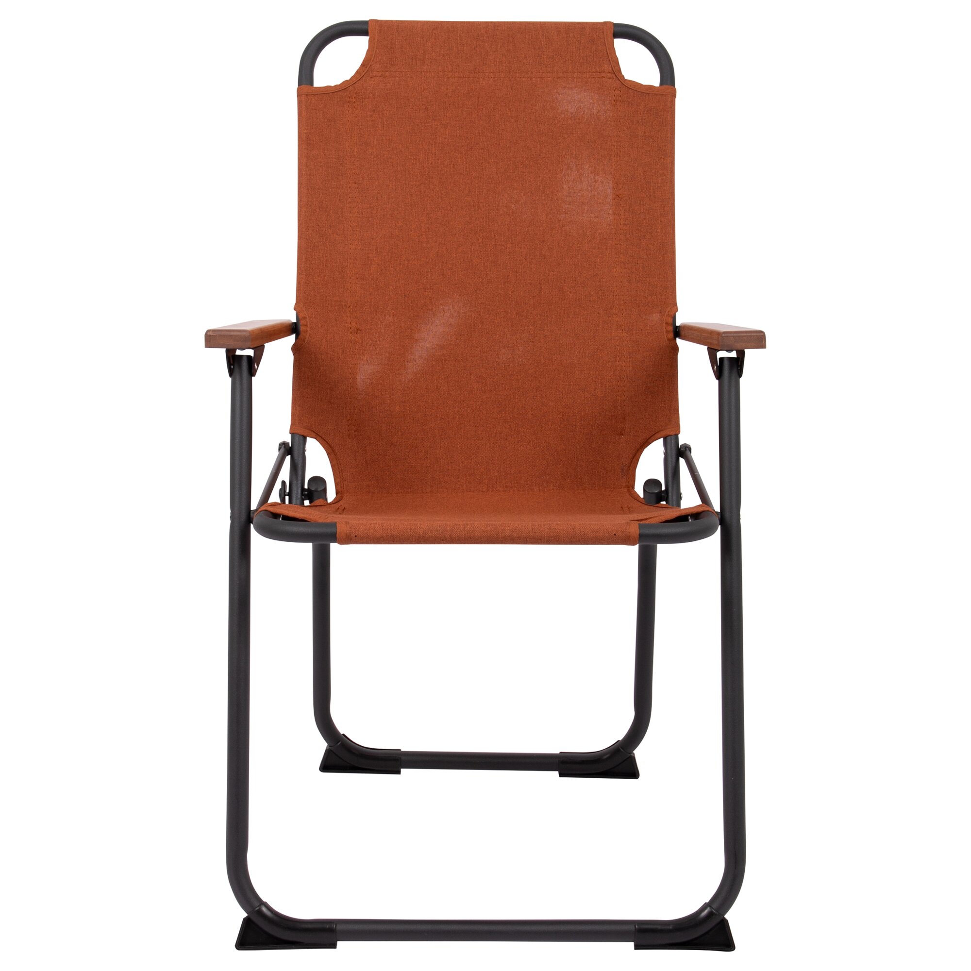 Foldable chair with cationic padding for comfortable seating. The lightweight black aluminium frame and bamboo armrests provide an elegant look. Thanks to stabilisers and a safety lock, the chair remains stable at all times.