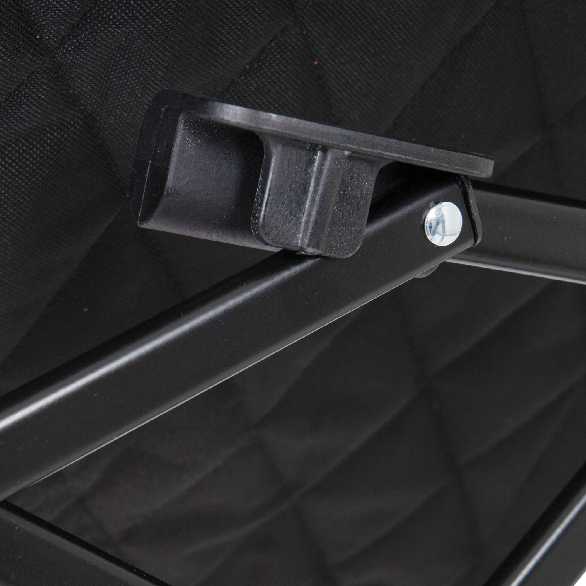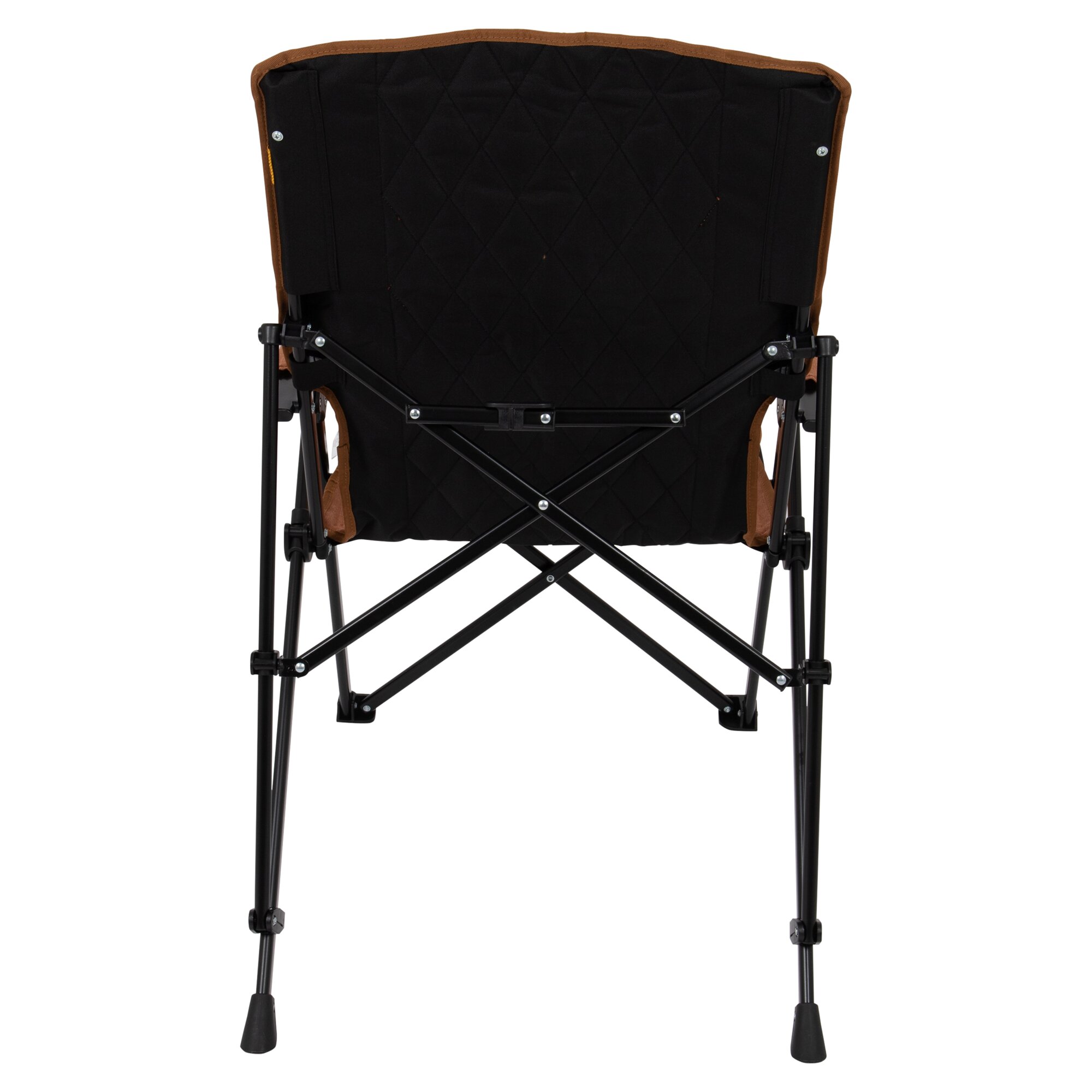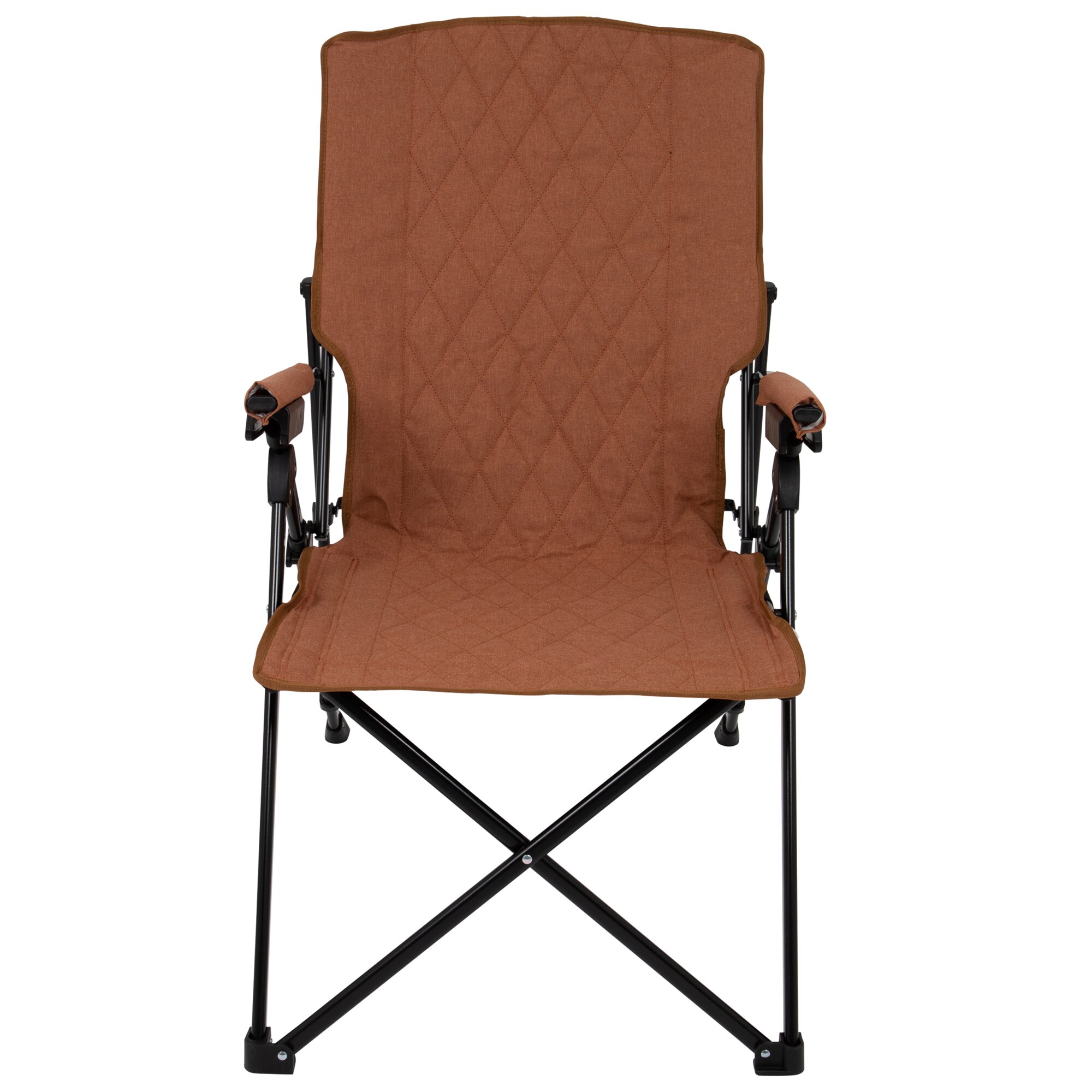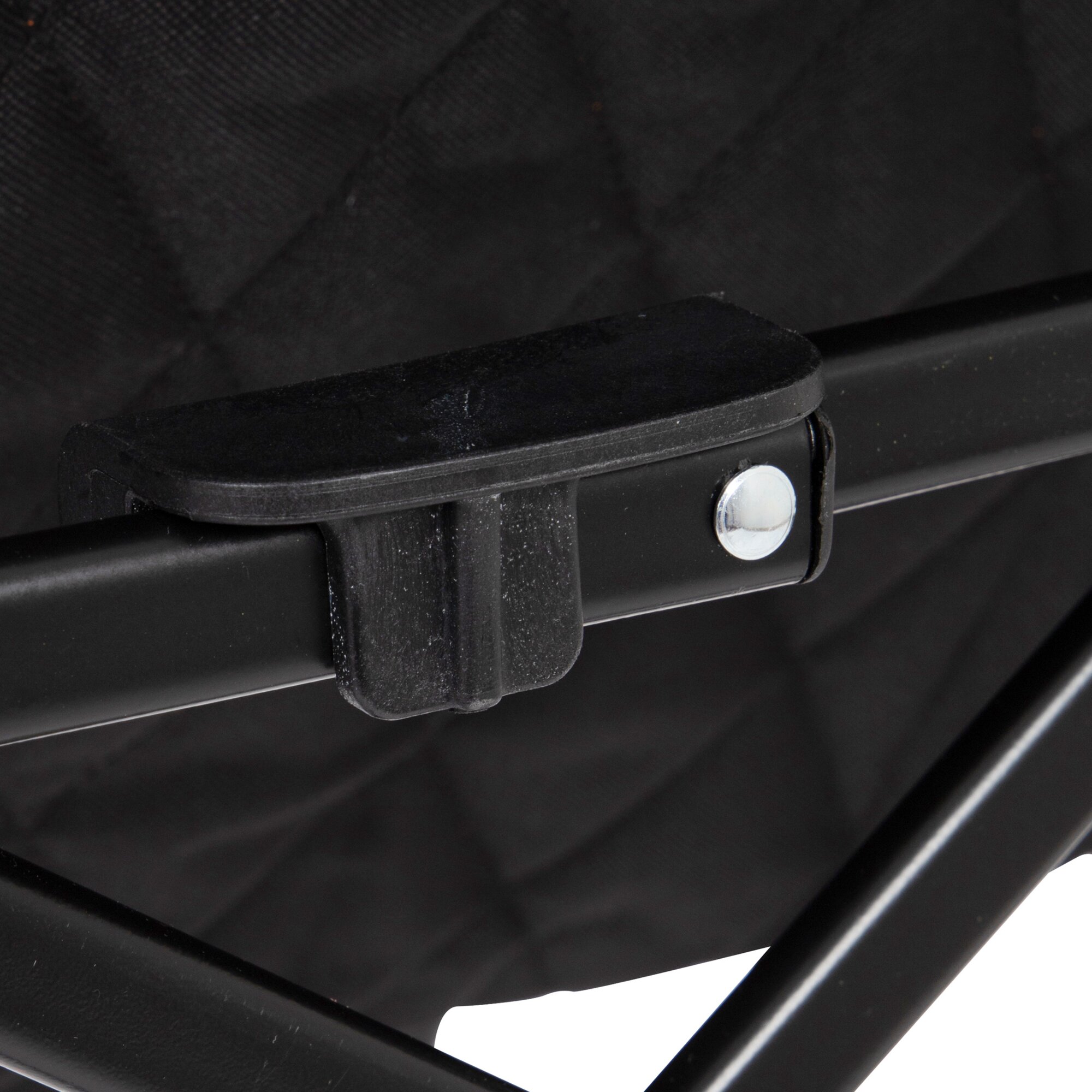 Foldable chair with 4-position adjustable backrest and padded armrests. The durable cationic fabric with stylish decorative stitching and the black steel frame provide stability and a refined appearance. Incl. carry bag.