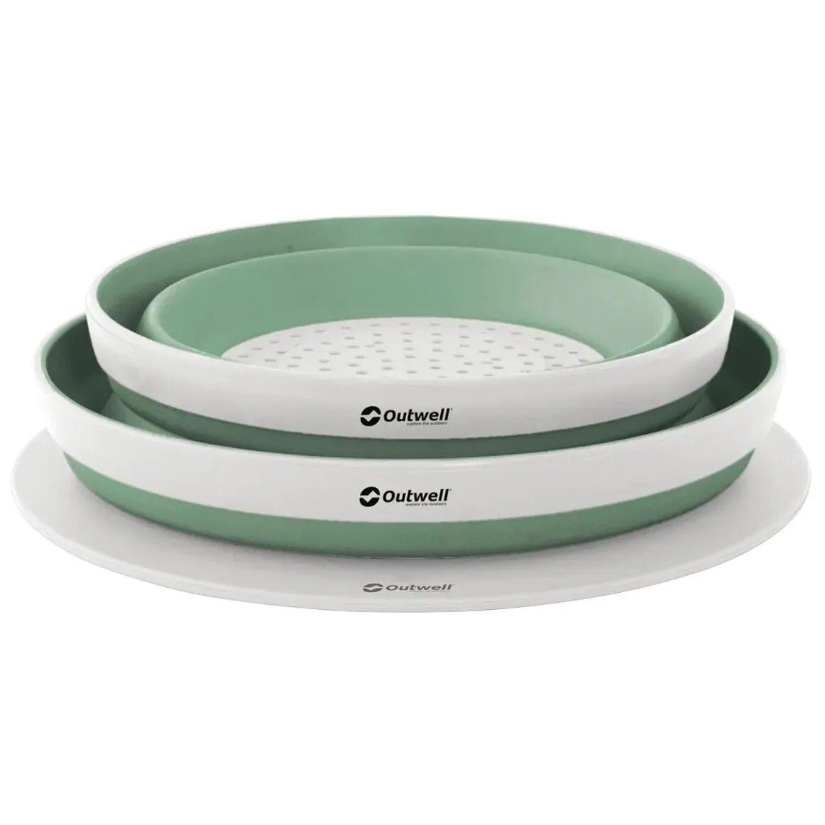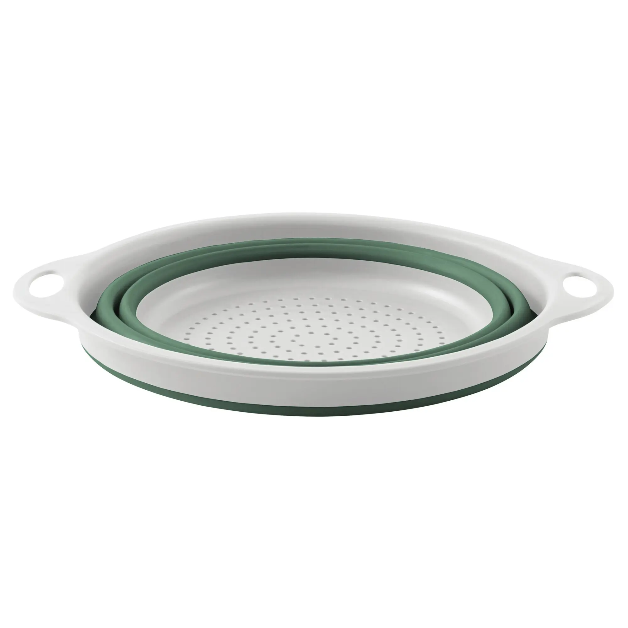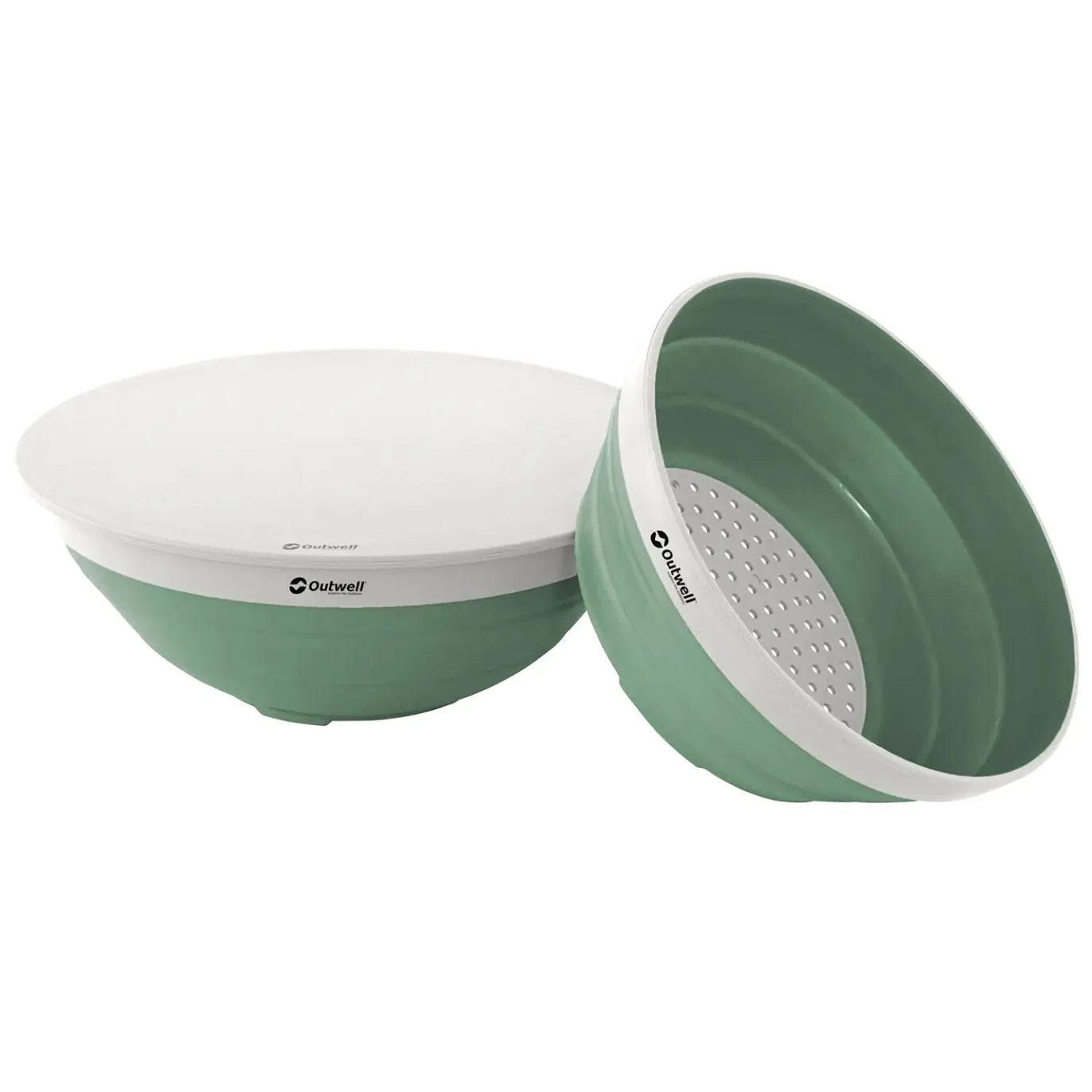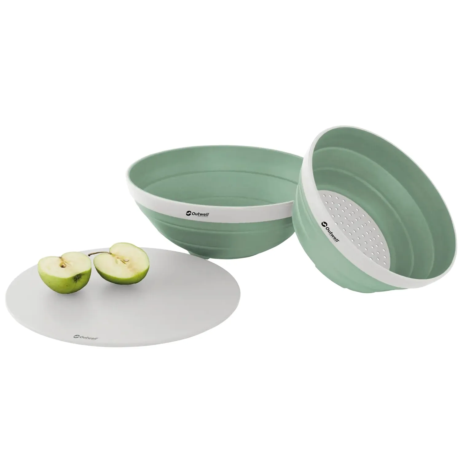 Folding bowl incl. lid and sieve. They can be packed together. Easy to open and fold. The lid can also be used as a cutting board with a juice groove. BPA-free.