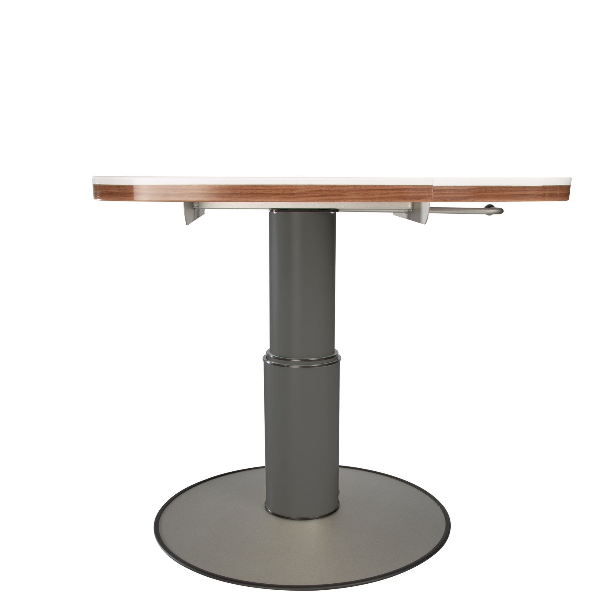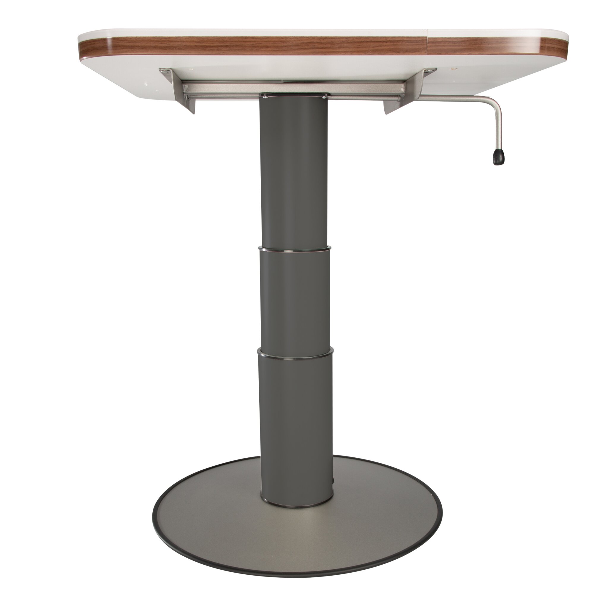 Ideal for caravans. Height-adjustable by 37.5 cm. Bottom height to bottom edge tabletop 32 cm. Upper height to bottom edge tabletop 69.5 cm. Tabletop is not included in delivery.