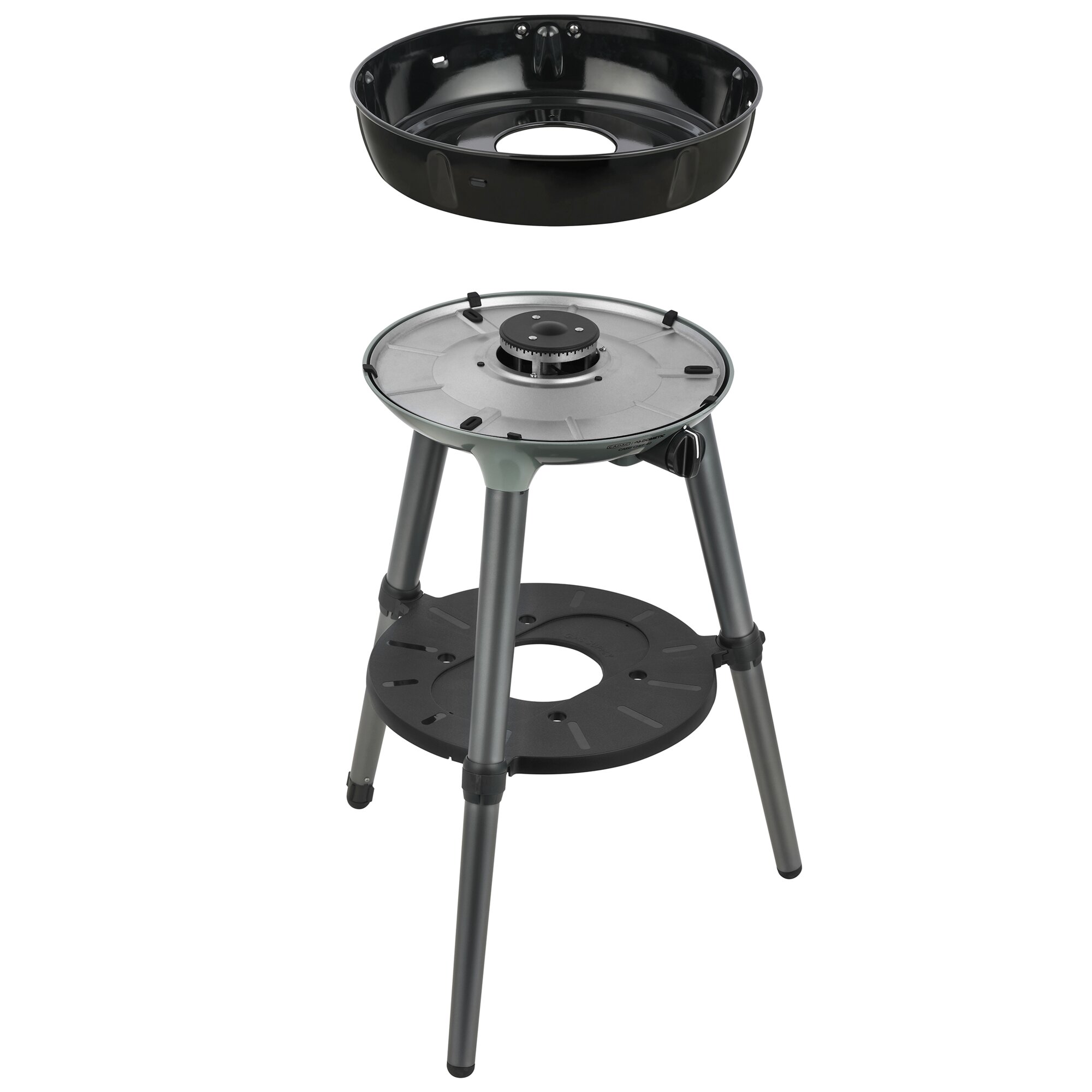 The Carri Chef 40 with a high-performance burner makes it possible for you to cook outdoors, anywhere, anytime. The easy-to-use and easy-to-set up barbecue with a removable, porcelain-enamelled fat pan and a grill grate with GreenGrill ceramic coating is easy to clean. The lid with integrated thermometer ensures that the barbecue has the perfect temperature for grilling meat, fish or vegetables. The Carri Chef 40 has an adjustable foot on one leg, which means that it can maintain stability on any surface or ground. The perfect companion for your next outdoor adventure. Incl. pan support, grill grate and lid.