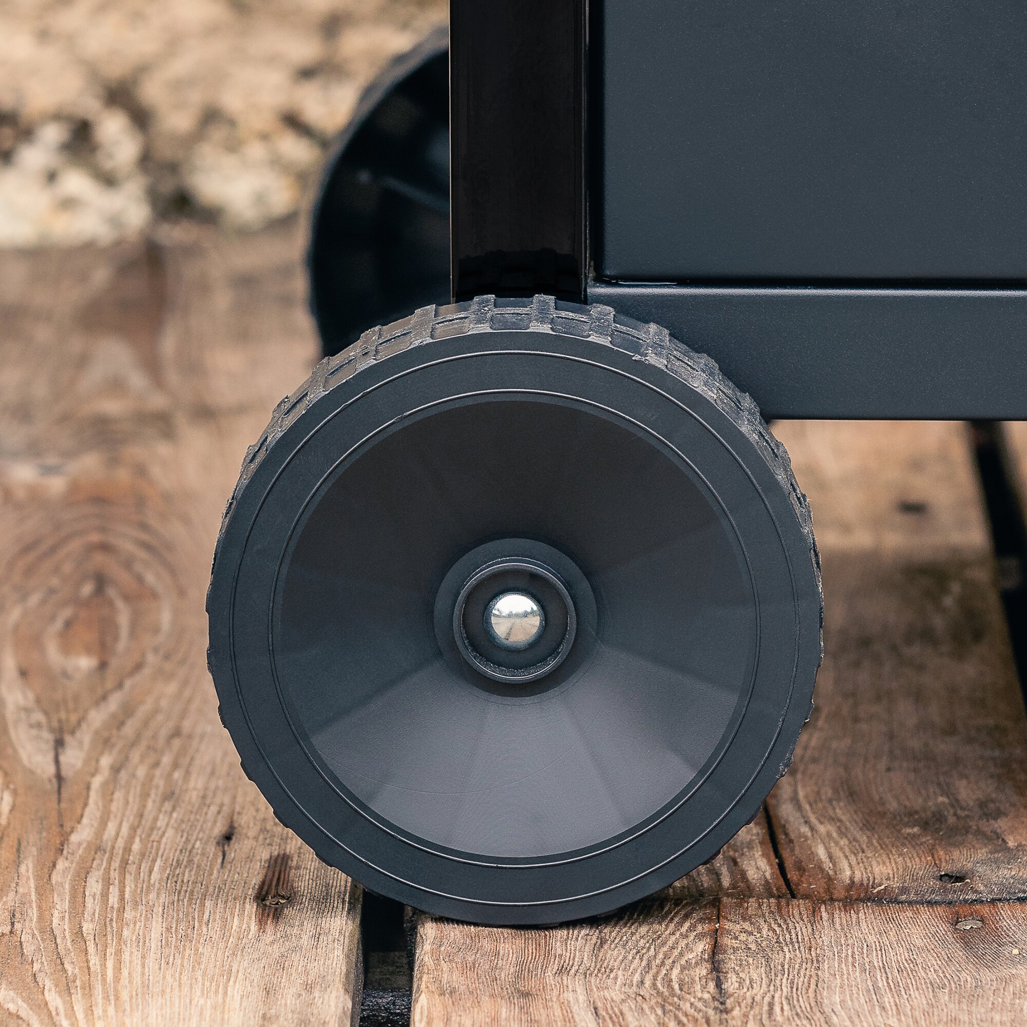 Closed steel trolley with spice compartment and two wheels, 3 steel burners, 7.5 kW, approx. 2135 cm² steel grilling surface (100%), piezo ignition, grease collection system.