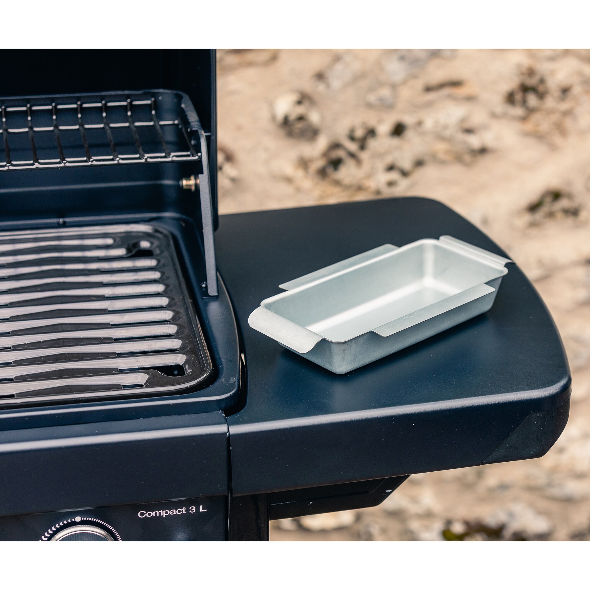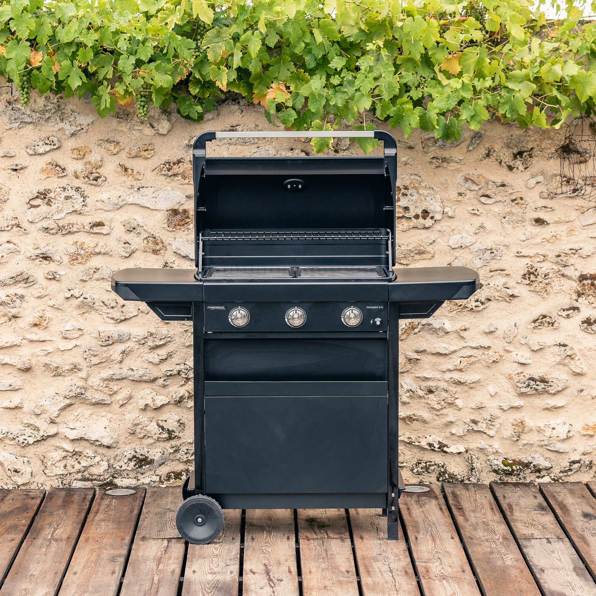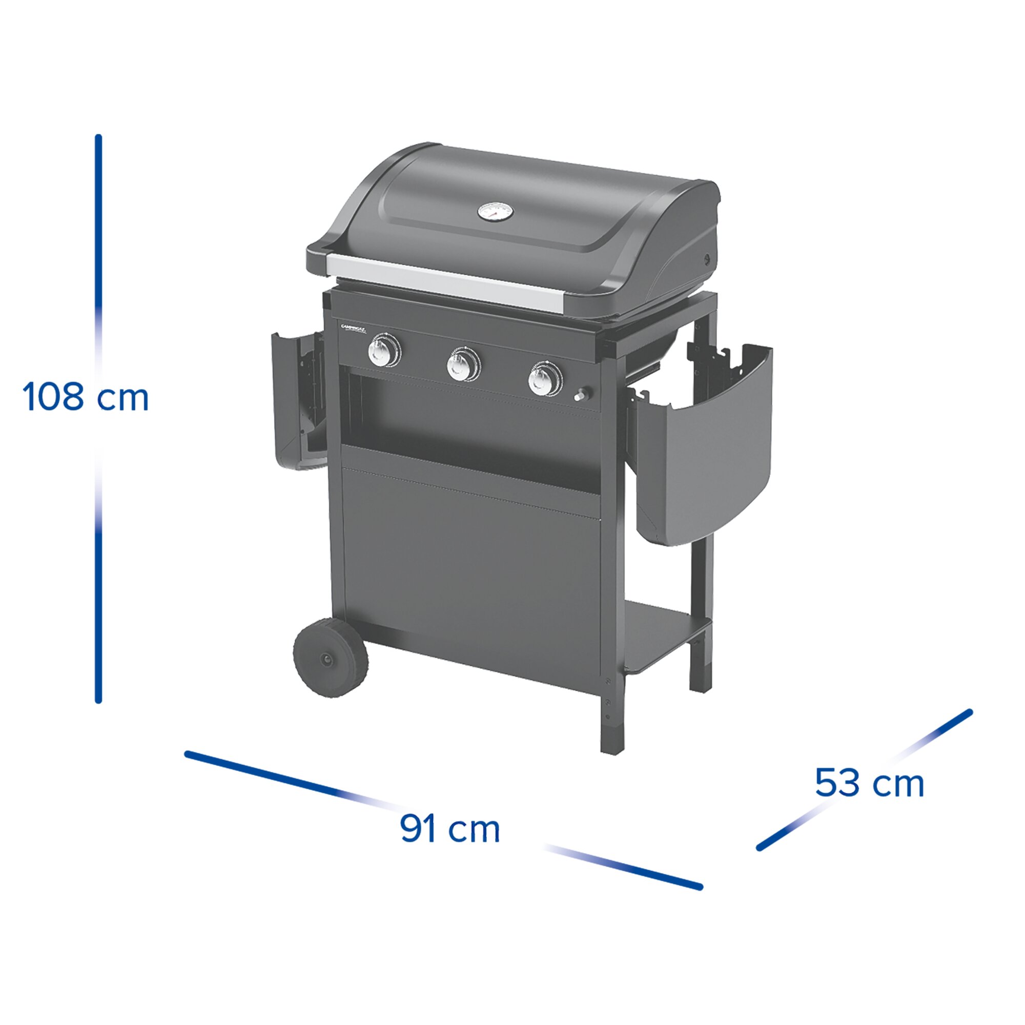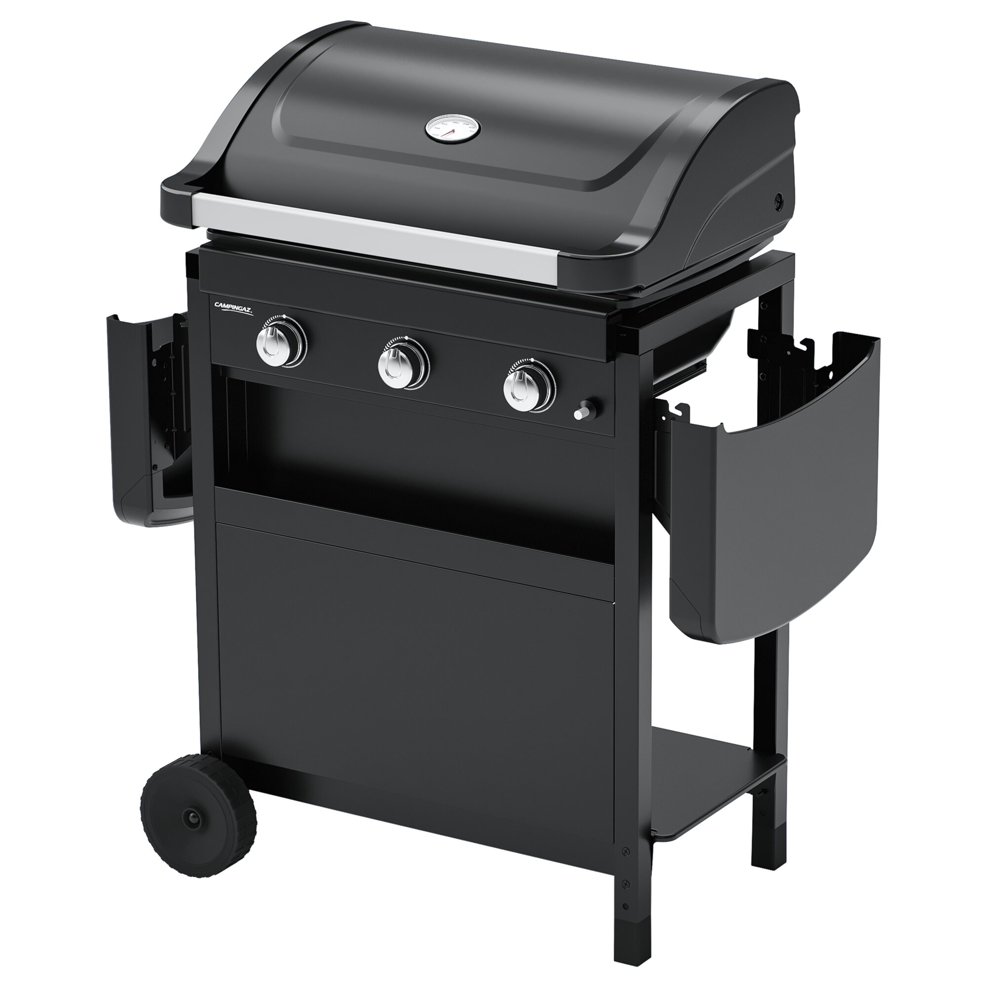 The Campingaz® Compact convinces with its elegant design and optimal price-performance ratio. The three powerful burners made of aluminised steel heat the entire grilling surface evenly. The optimal heat distribution makes it possible to use every centimetre of the grilling surface efficiently and to cook food evenly. After grilling, both side tables of the barbecue can be folded down for space-saving storage. Furthermore, the two large castors allow for effortless transport.